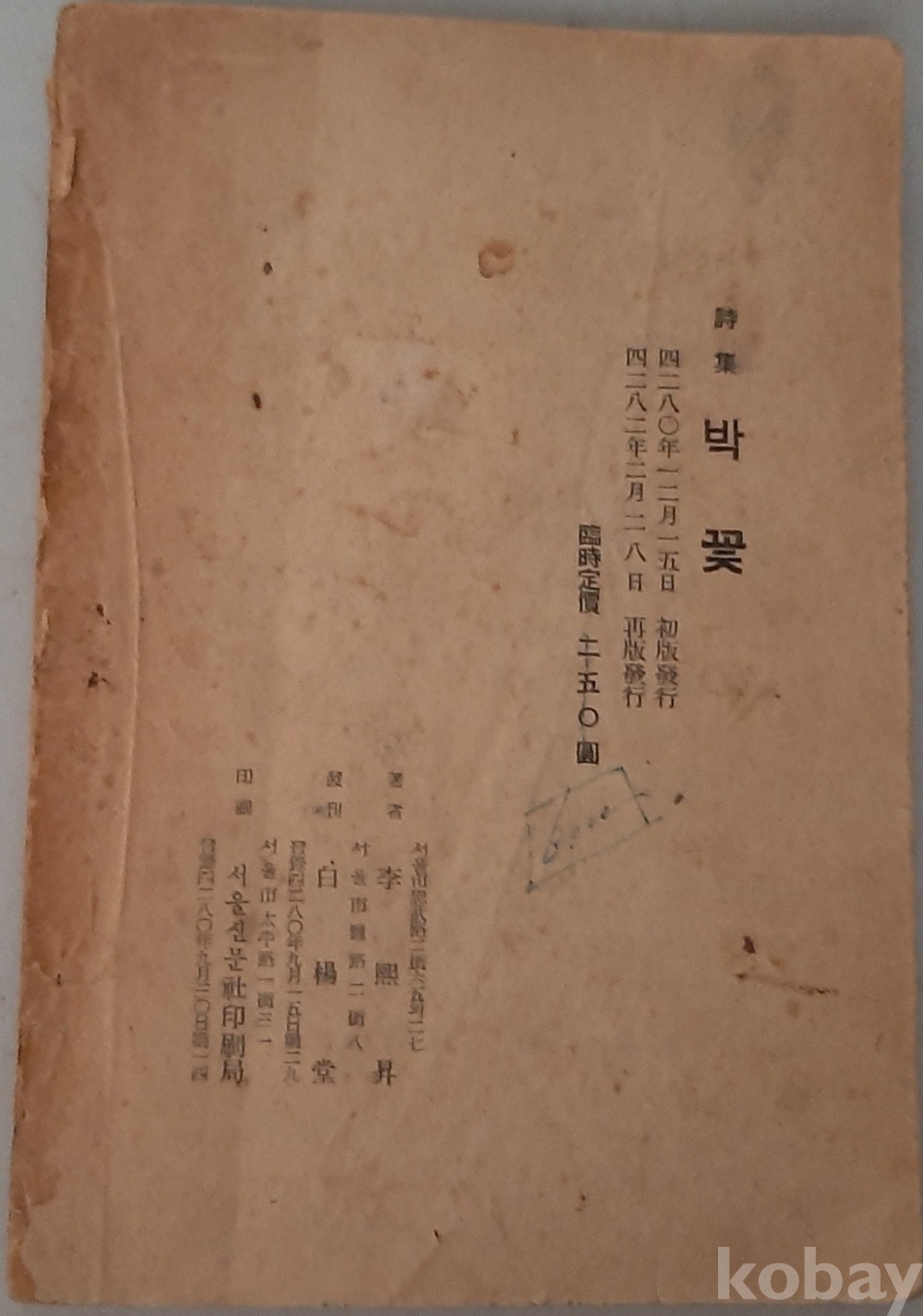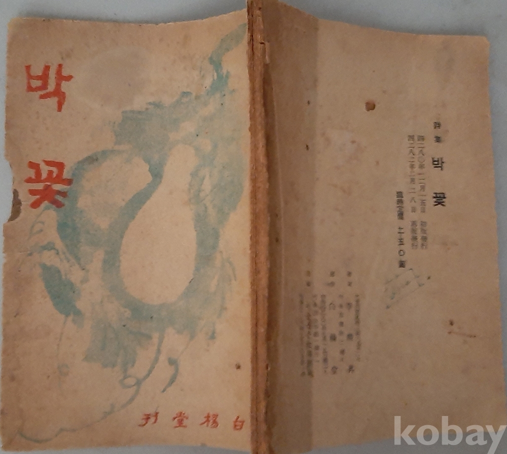 박꽃-이희승 시집 1949년재판 백양당 간행 장정 박문원
