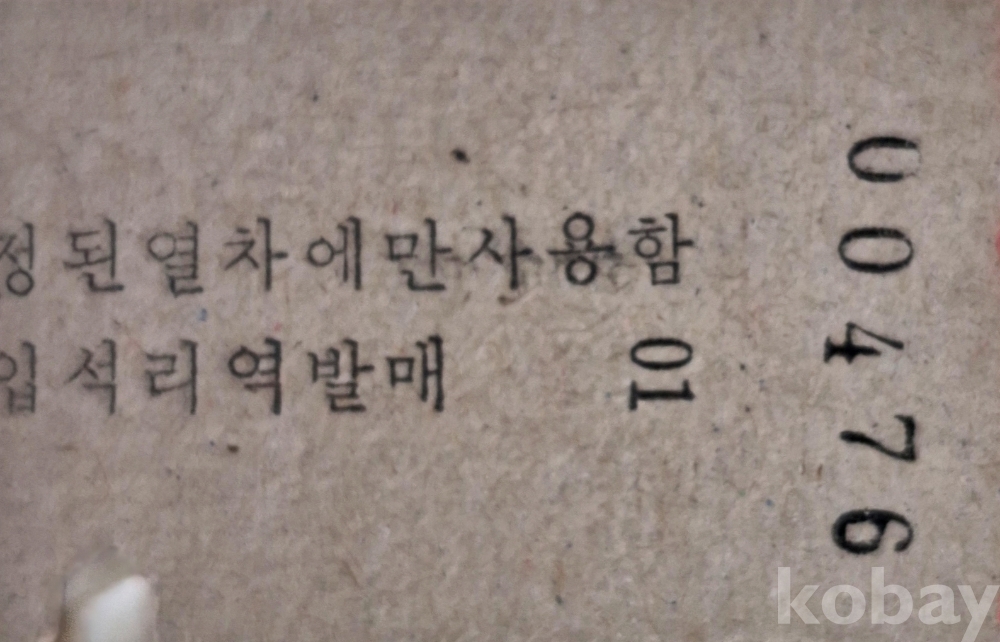 통일호 보충승차권 입석리-고한 노소(입)입니다.