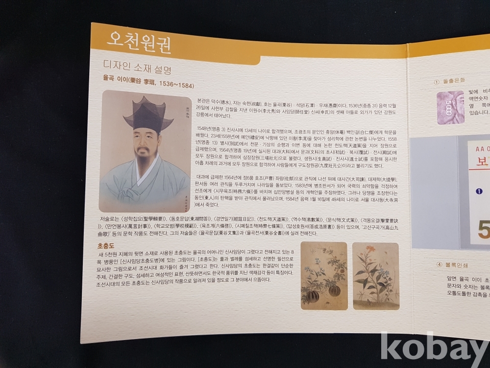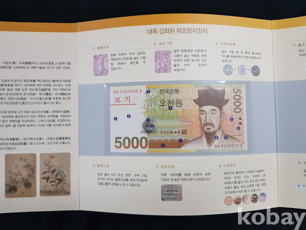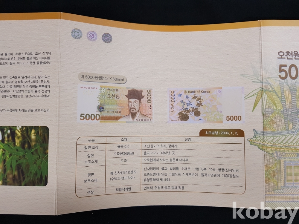 지폐에 대한 설명이 자세하게 기재되어 있습니다.