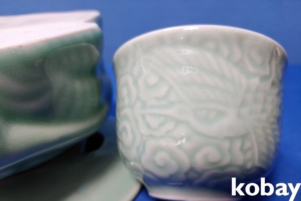 ** 도자기나 유리 등에 하얗게 보이는 것은 불빛 입니다.