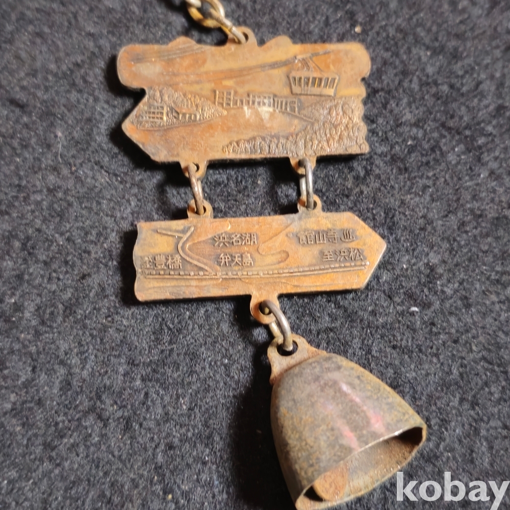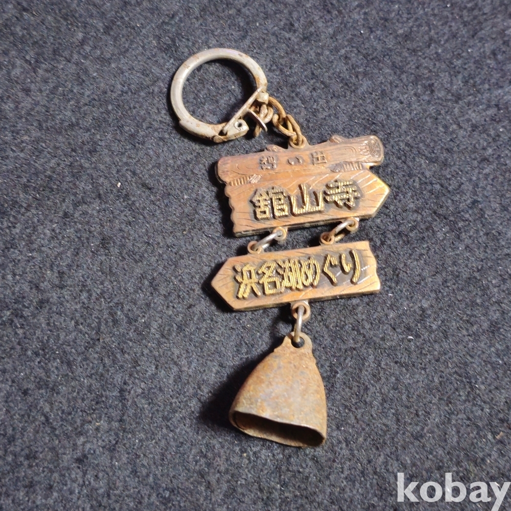 (((관광기념품/키홀더/키링/열쇠고리/가방고리))) 오래전 일본 하마나호 동부 다테야마지 (館山寺) ) 관광기념 종달린 금속재질 키홀더