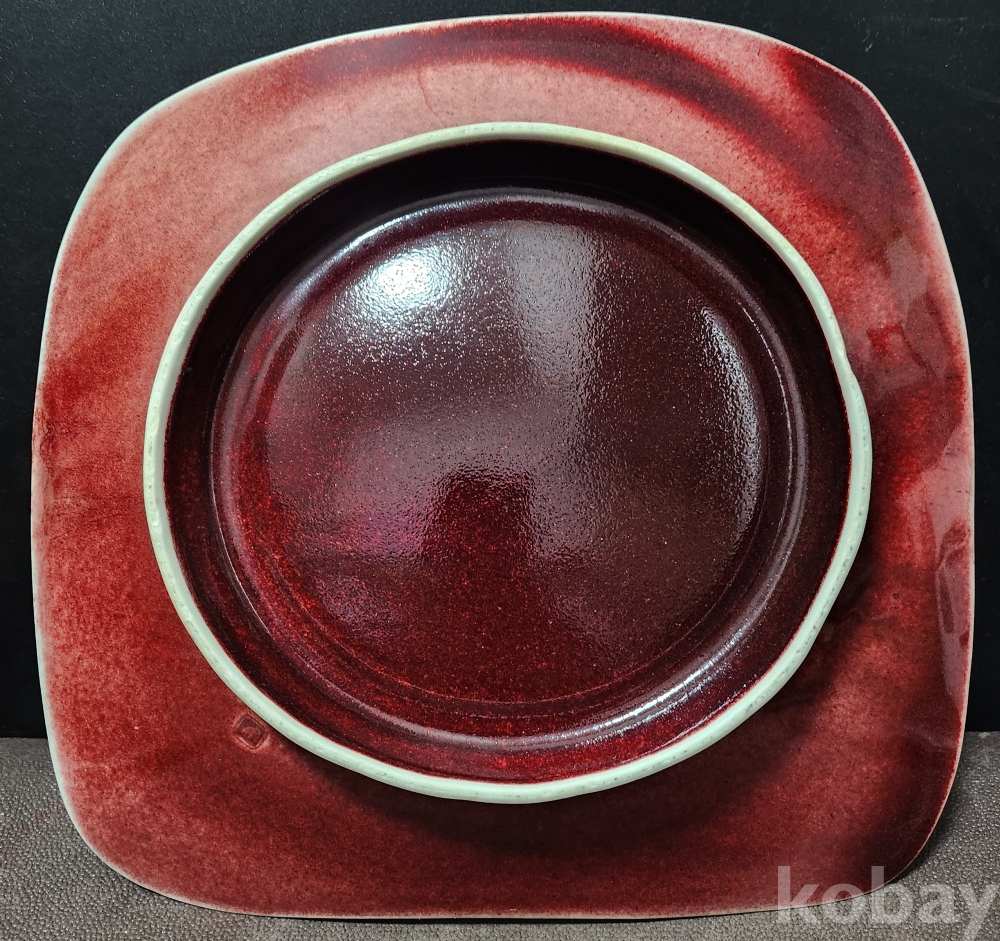 진사 사각 접시 辰砂 四角 楪匙 < 도예가 낙관 수결 >