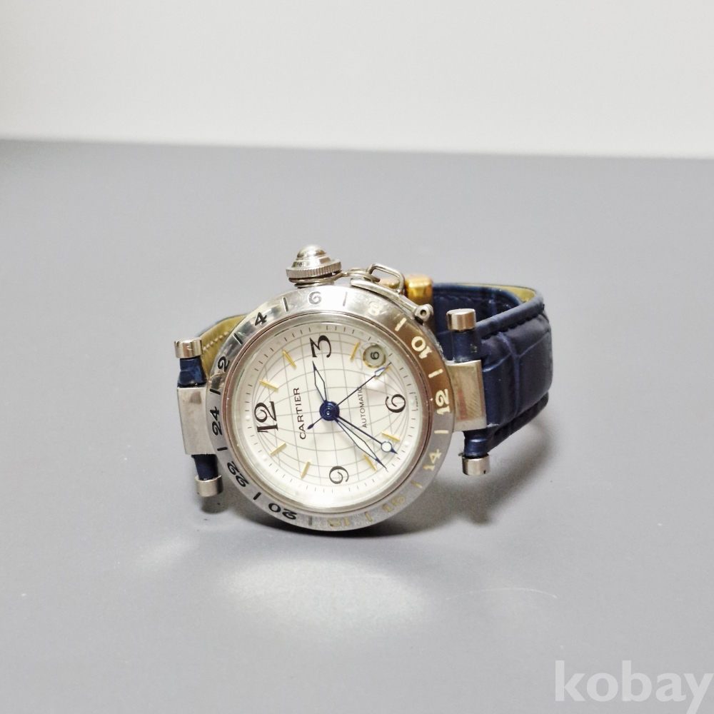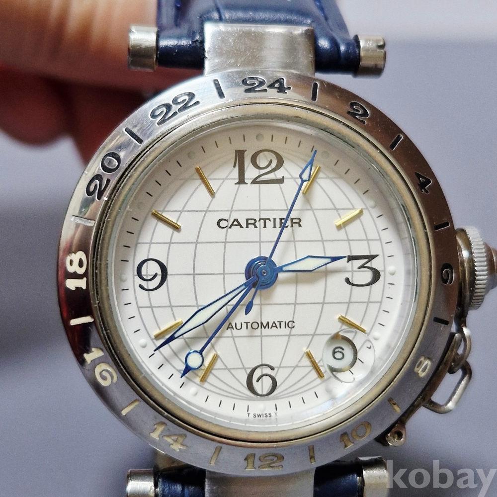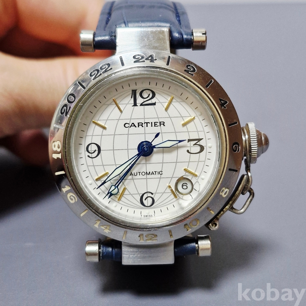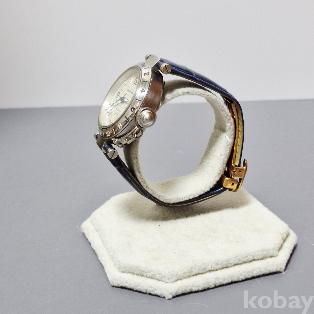 다이얼 중앙의 지구본 그리드 패턴과 블루 스틸 핸즈의 조화가 매우 고급스러운 빈티지 워치입니다.
