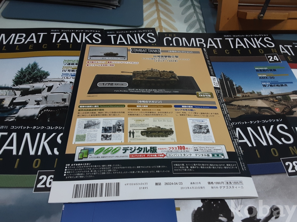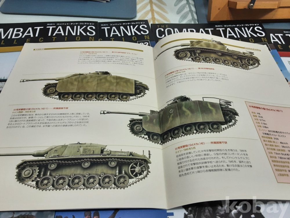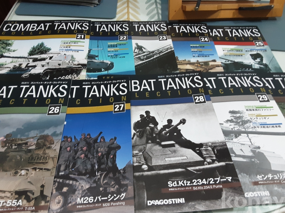1. 데오고스티니(DeAGOSTINI) 전투 탱크 컬렉션은 다양한 국가의 제2차 세계 대전 및 냉전 시대를 대표하는 탱크들을 정교하게 재현한 1:72 스케일의 모형 120종 시리즈로 각 모델에는 디스플레이 케이스, 탱크모형과 잡지가 함께 제공된다. 전세계적으로 수집가들에게 인기가 많은 데오고스티니(DeAGOSTINI) 탱크 모델 해설서인 잡지 전 120종 판매. 21. 4호전차 G형 22. M13/40 23. 3gh 돌격포 G형 24. AMX –30 25. 대공전차 게파르드 26. T-55 A 27. M26 퍼싱전차 28. Sd.kfz Puma 29. 센츄리온 MK.3 30. T-80BV