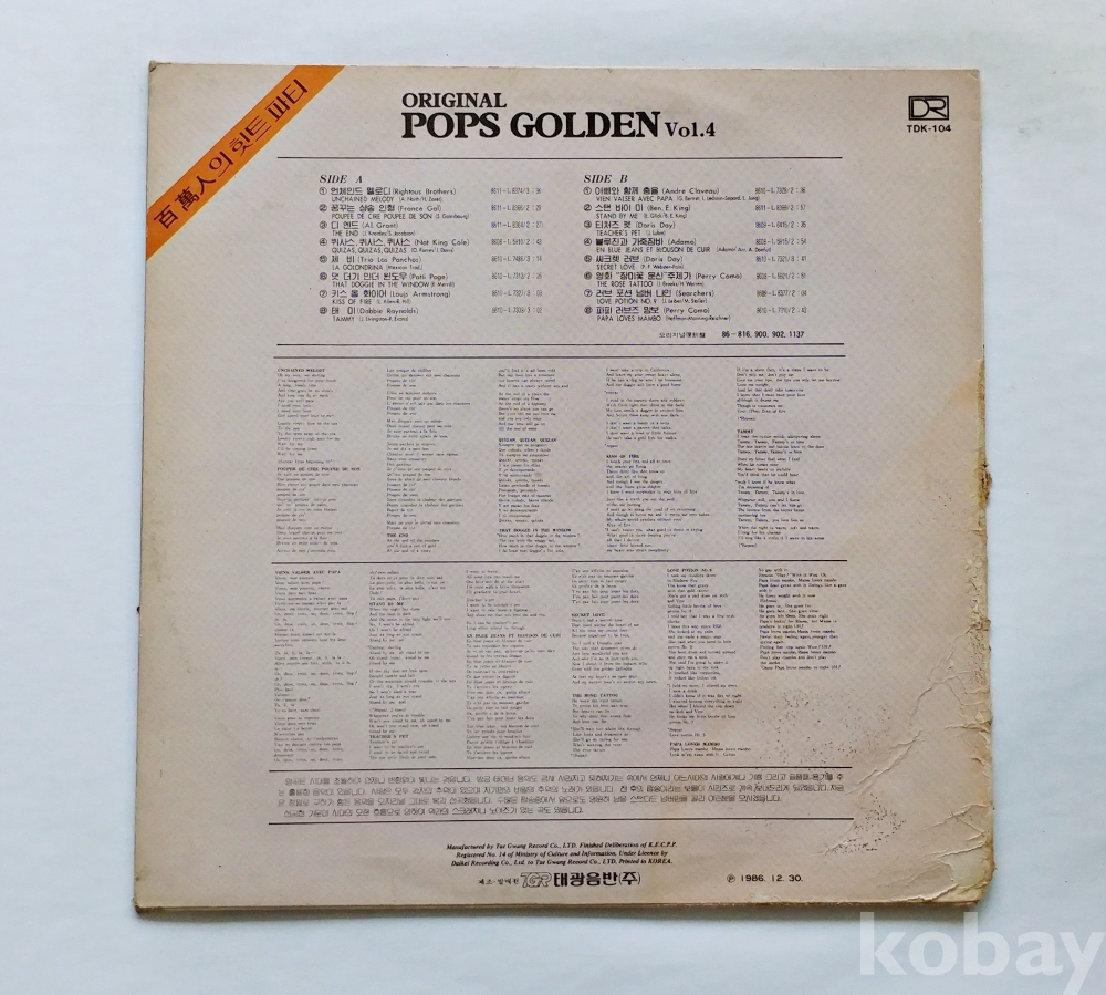 EX : 약간의 마모, 모서리 찢김 존재 음반상태