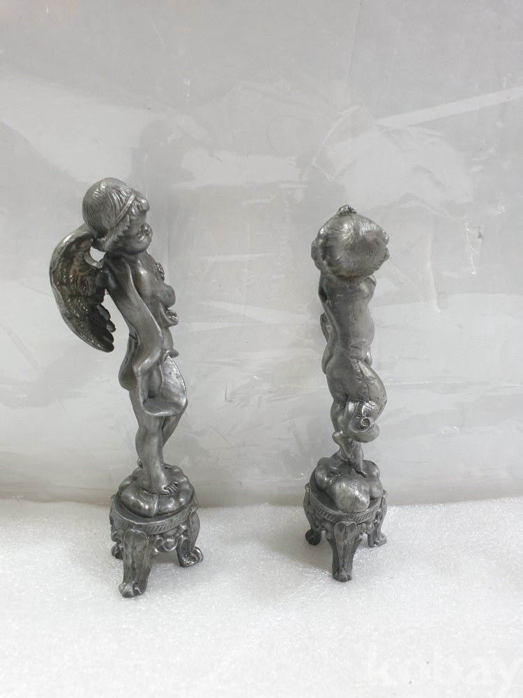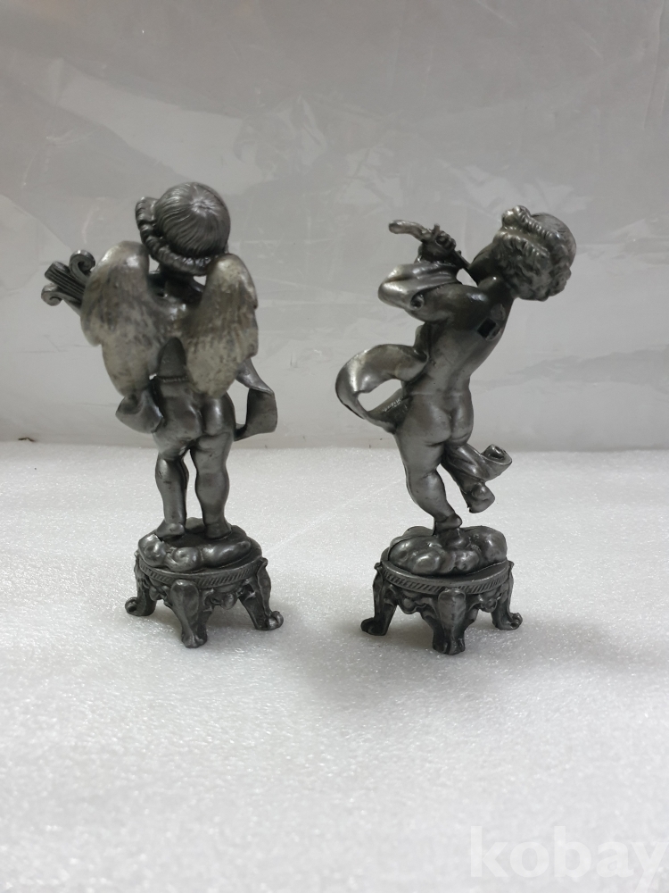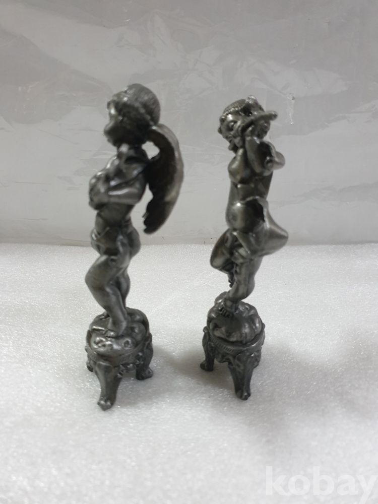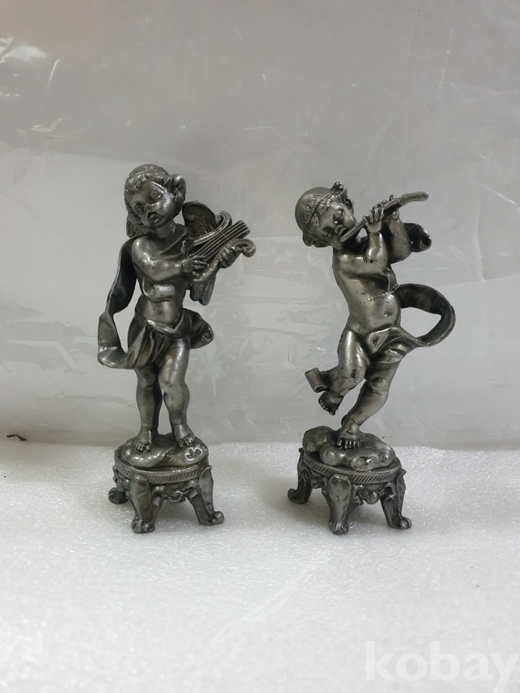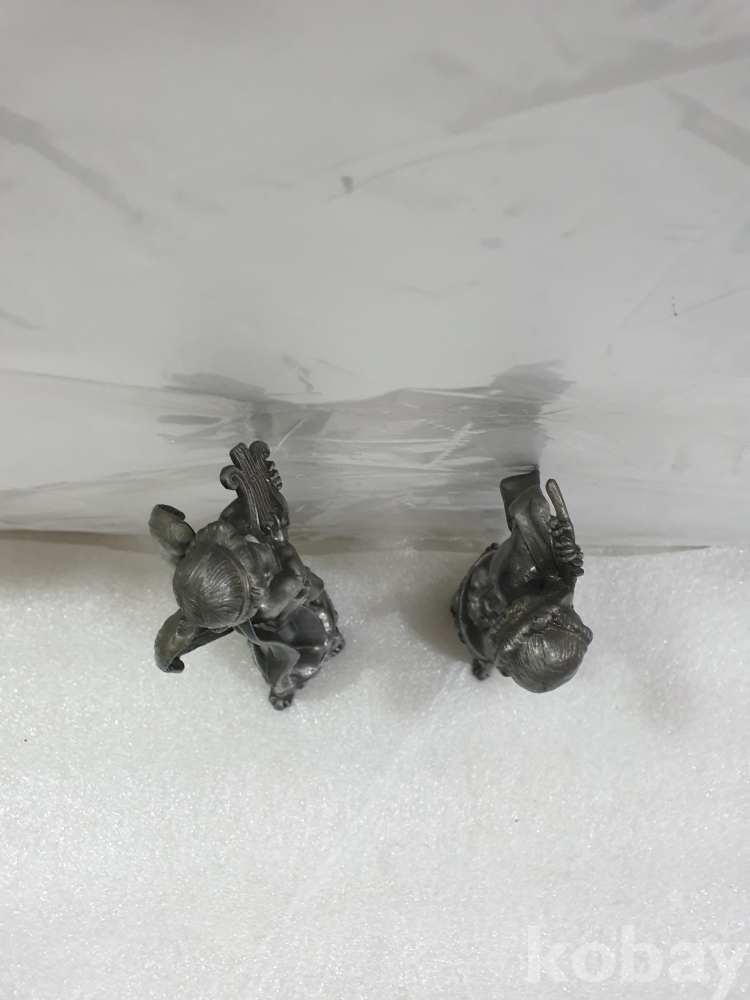 {천원경매}4-2117 주석 하프와 피릴 연주 천사 장식품 2개 (15cm)