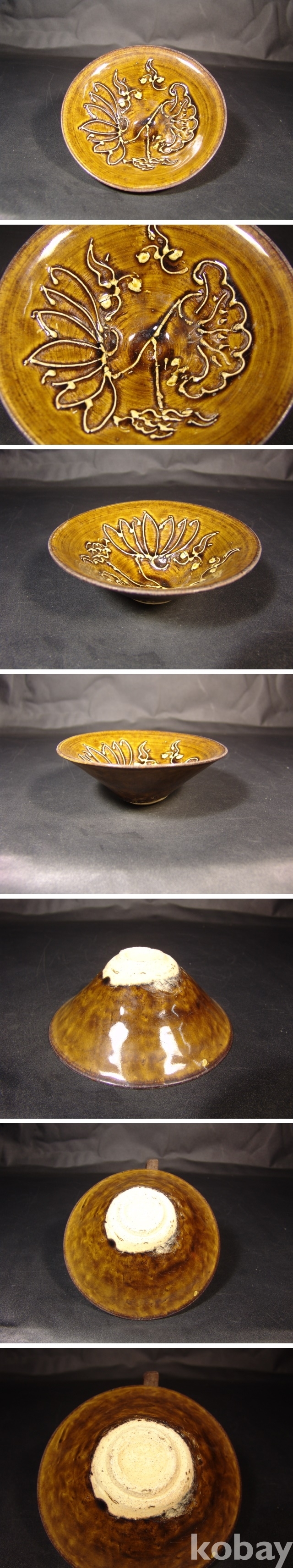 www4541 길주요(吉州窯) 갈색유양각 연화문다완(蓮花紋茶碗)