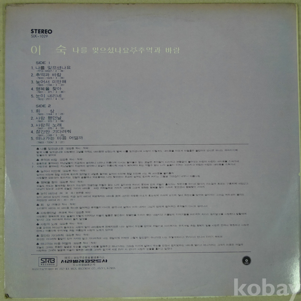1978년 가수 이숙 음반 LP