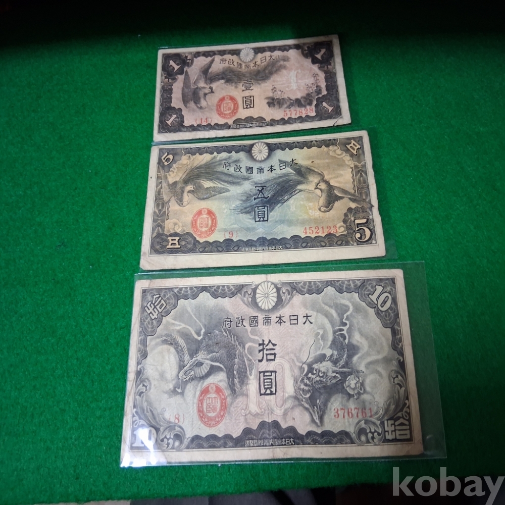 일본군표 1,5,10엔 3종