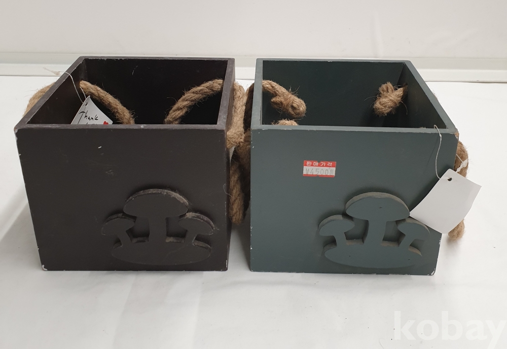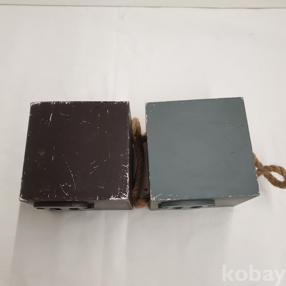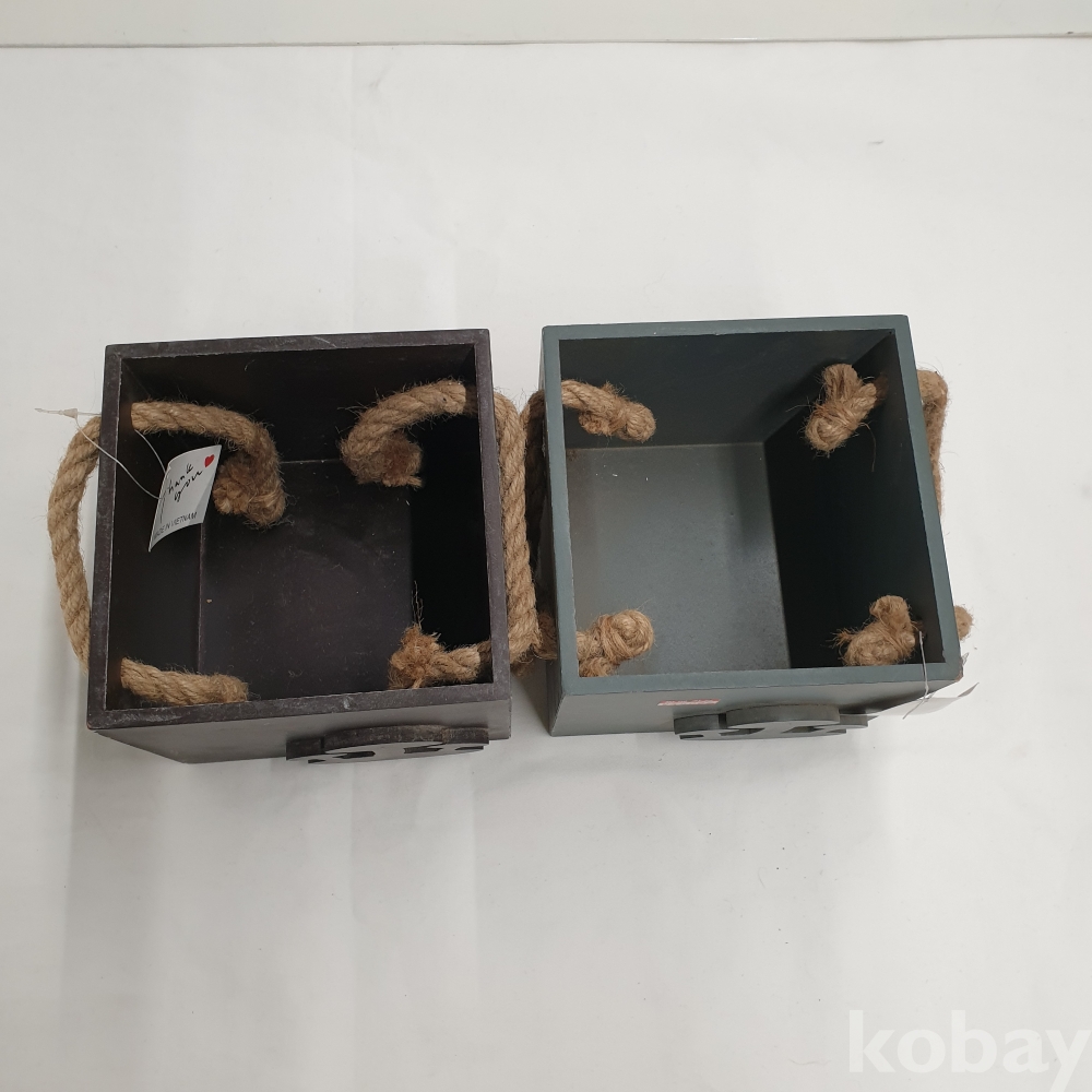 [*천원행복*] J - 4 - 0372 사각 수납 박스 2개 (13.5*13.5*13.5, 브라운, 그레이, 미사용, 기스 약간씩 있음)