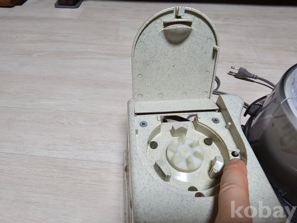 유리병을 좌측에 끼우면 첫번째 버튼은 눌러집니다. (본체 커버를 닫아도 버튼은 눌러집니다.)