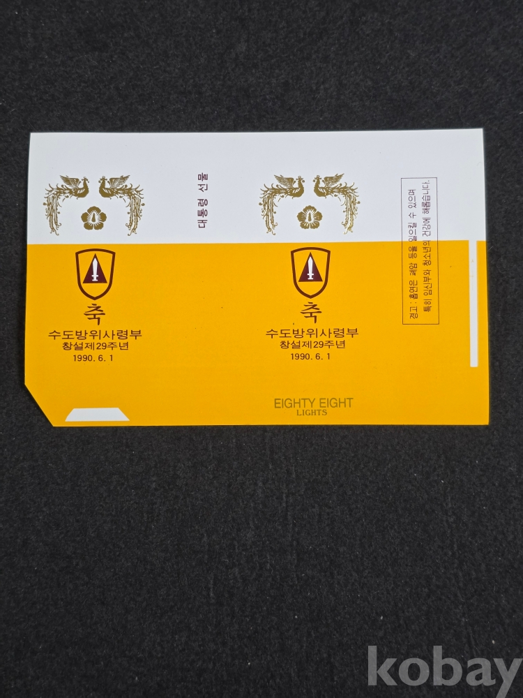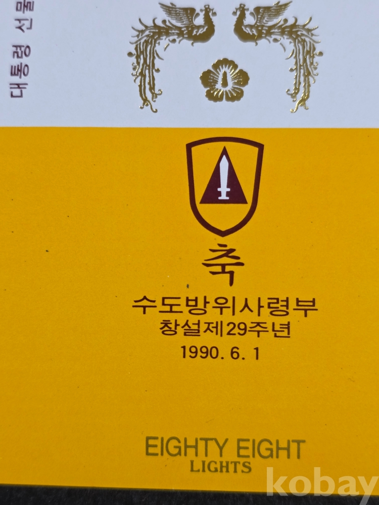 (((근현대사자료/대통령자료)) 1990년 대통령의 상징 무궁화와 봉황금박 수도방위사령부 창설 제29주년기념 88 라이트 담배포갑지 (대통령선물)