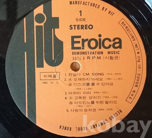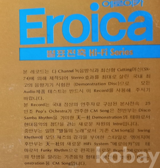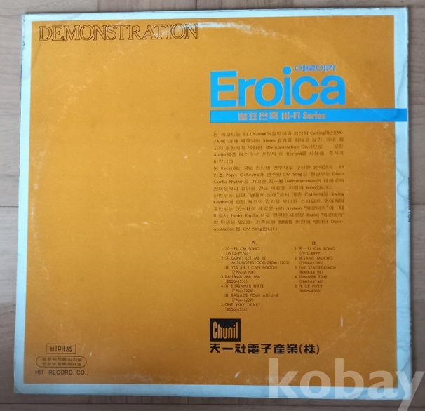 오랫동안 소장해온 데몬스트레이션 앨범 몇장을 골라서 올리고 있읍니다. 음향기기와 레코드 회사 등이 제작한 홍보, 사은, 증정. 비매품 앨피반입니다. 따로 수집해 봐도 좋을것 같읍니다. 이 음반은 당시 유명했던 천일사에서 제작한 비매품반입니다. 상태는 사진을 아주 여러장 올렸으니 자세히 봐 주시고.. 직접 틀어보지 않았읍니다만 대체로 좋아보입니다. 상당한 기간 공들여 수집했던겁니다. 아시겠지만 한번에 만나기는 어려운 음반들입니다.