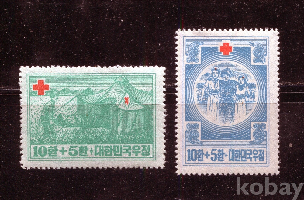 - [자선우표] 1953년 적십자모금 2종 (MNH : Mint Not Hinged, 우표뒷면 힌지자국없이 깨끗한 상태)