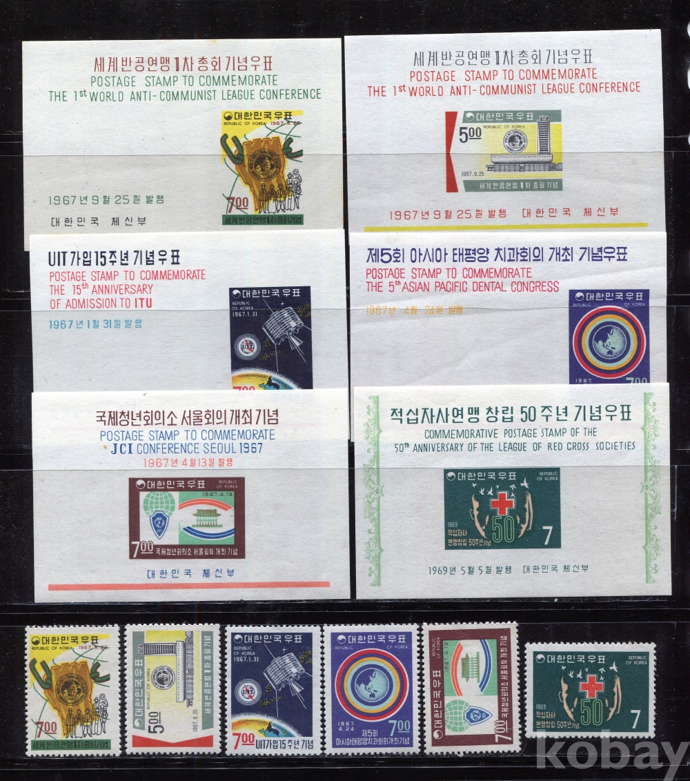 - [시트/우표] 1960년대 미사용 기념시트 및 우표 모음 6종 3 (All MNH : Mint Not Hinged : 뒷면 힌지자국없이 깨끗한 상태)