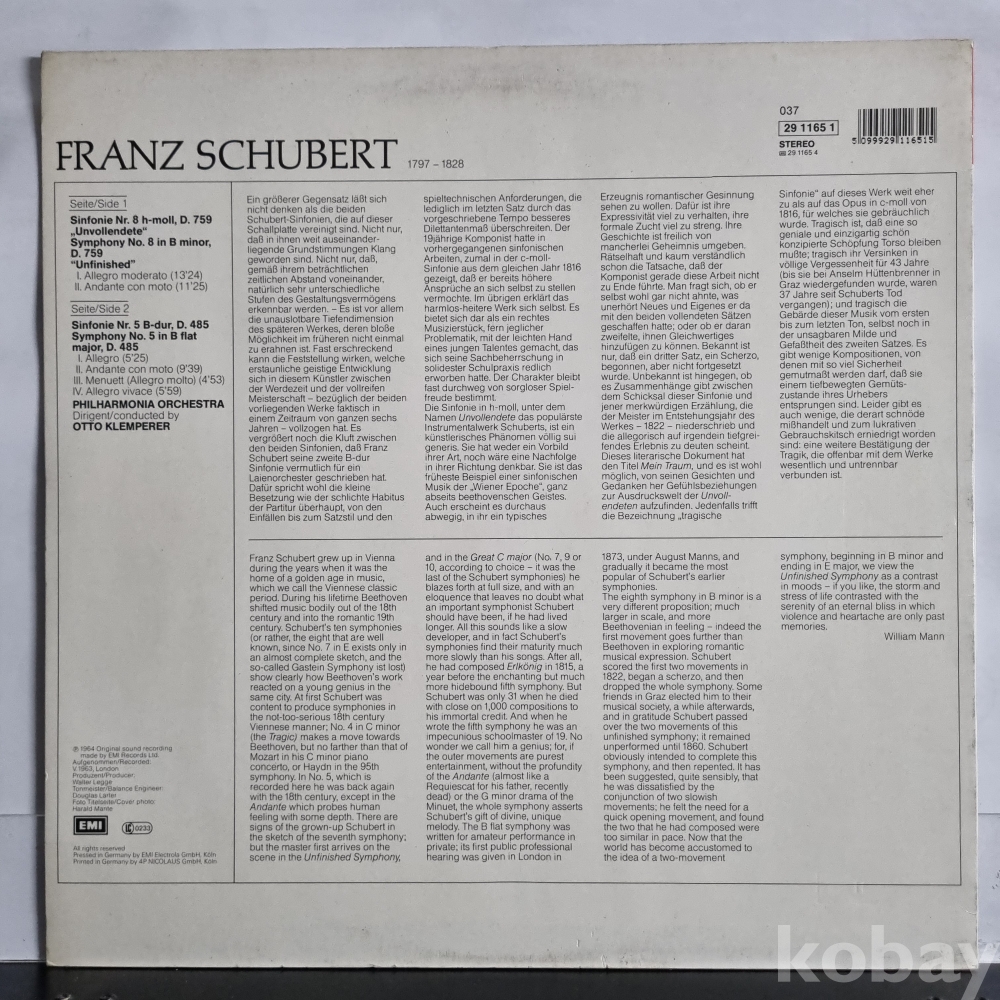 Schubert*, Klemperer*, Philharmonia Orchestra – Schubert Sinfonien Nr. 5 & 8 "Unvollendete"