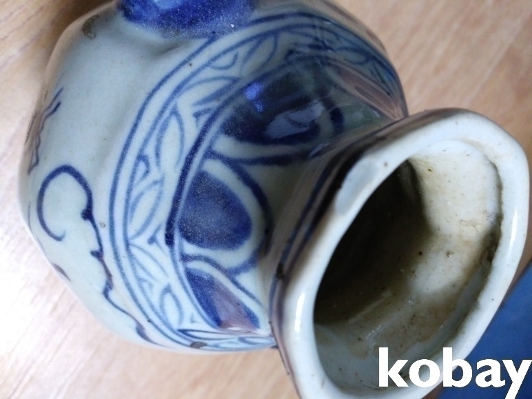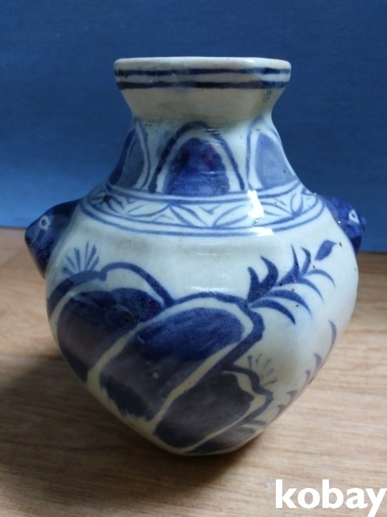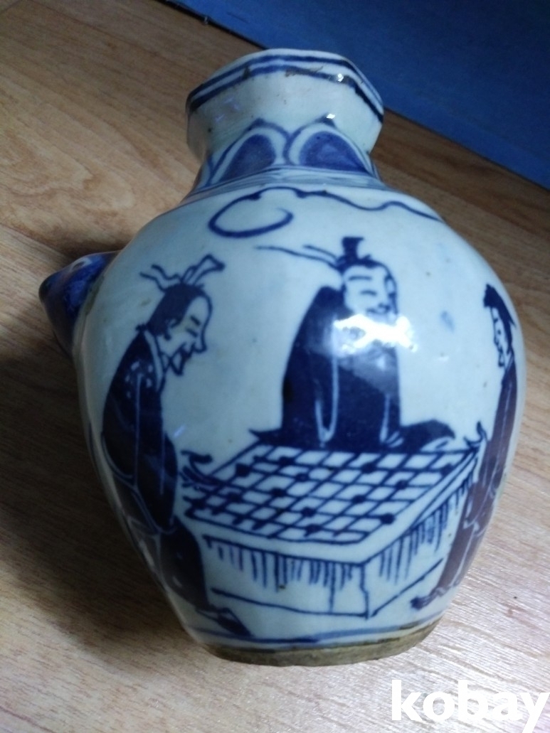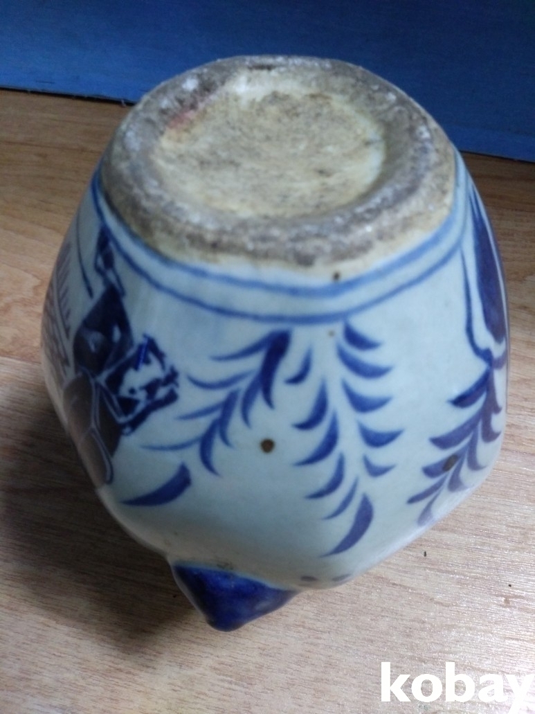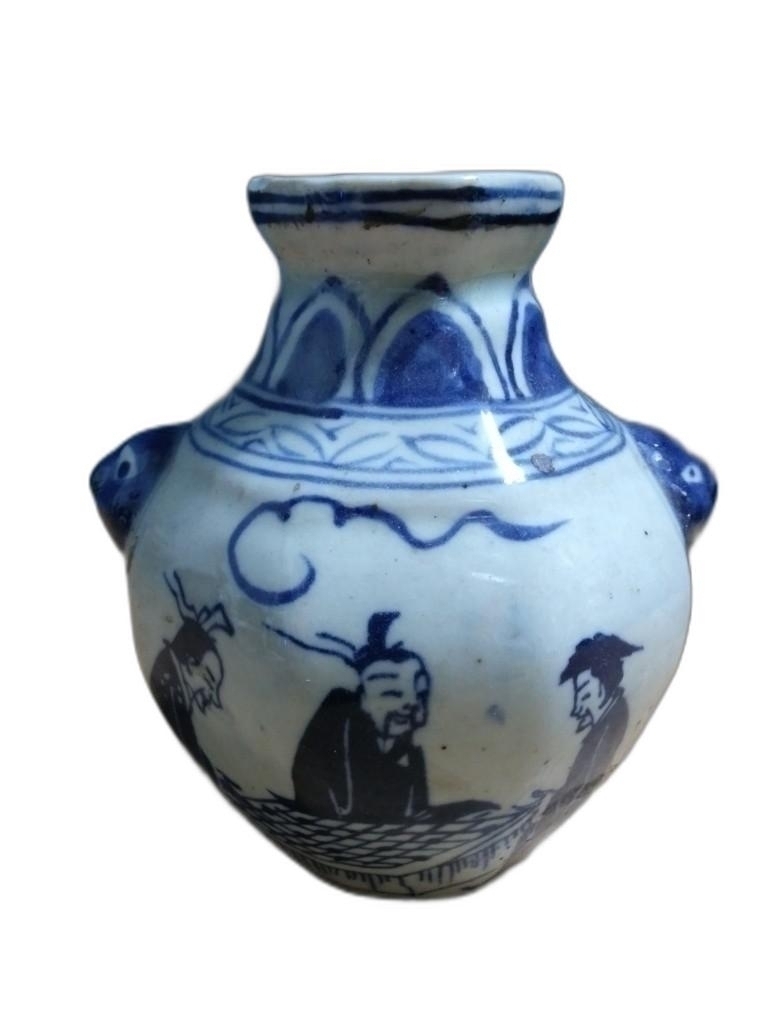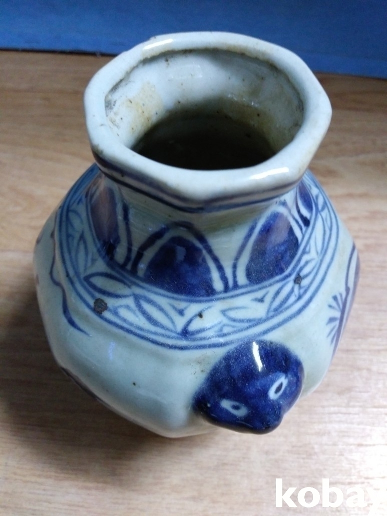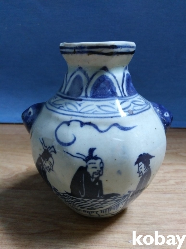 팔각에 인물 도안이 있는 작은 도자기 입니다.