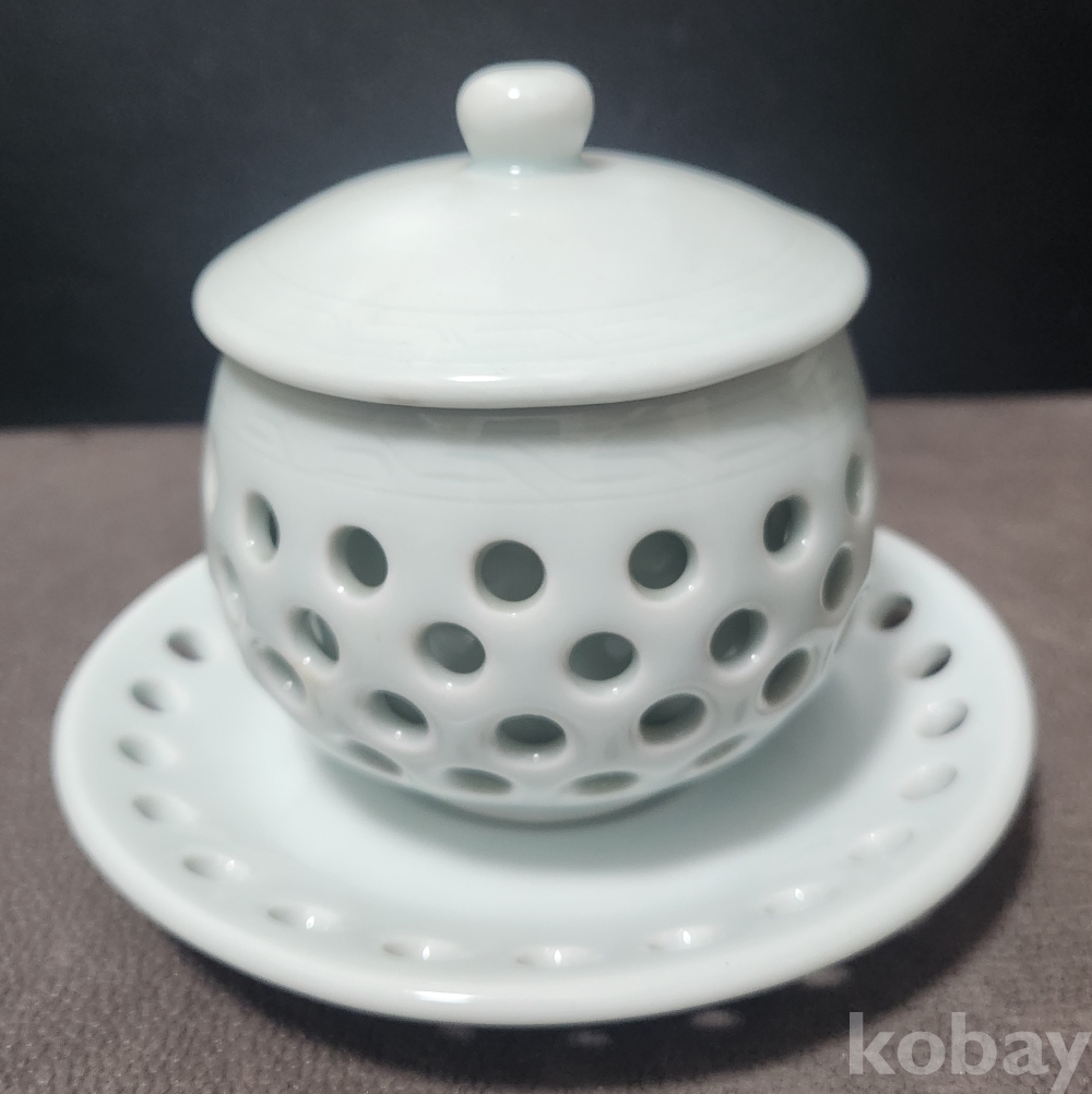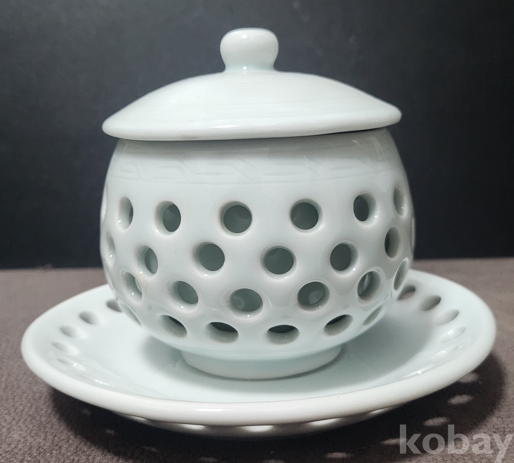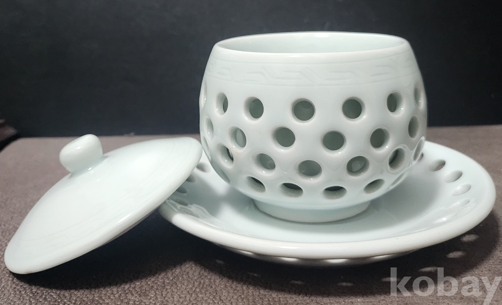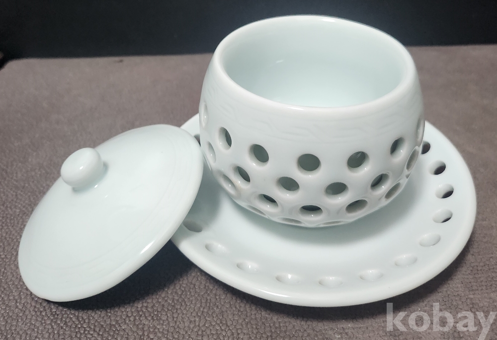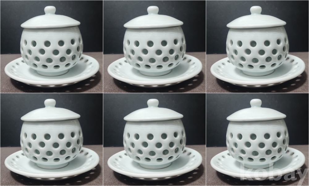 백자투각다기차호 白磁透刻茶器茶壺 6점 세트 작품 < 도예가 수결 作 >