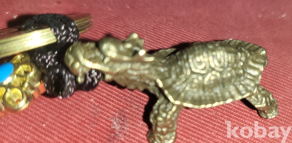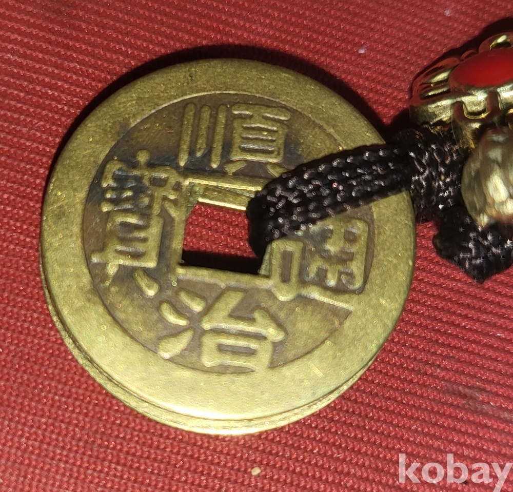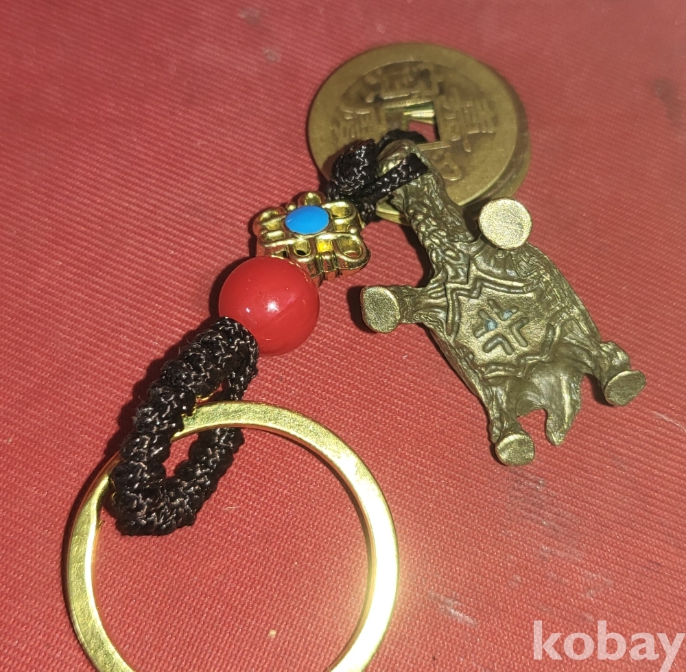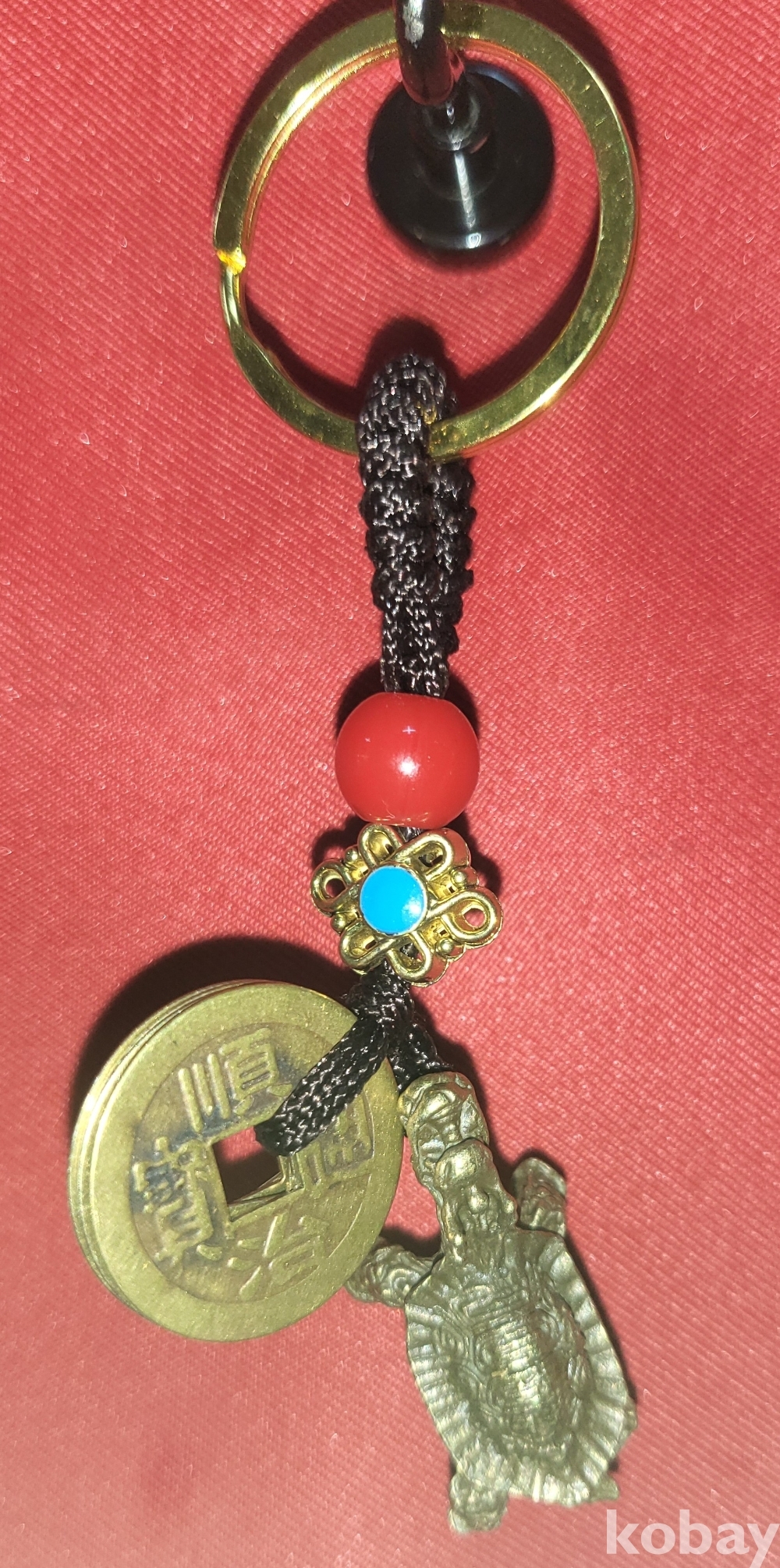 중국 황제인 순치통보(順治 通寶)와 가경통보(嘉慶 通寶 ) 엽전5개와 청동 거북이가 달린 열쇠고리입니다,