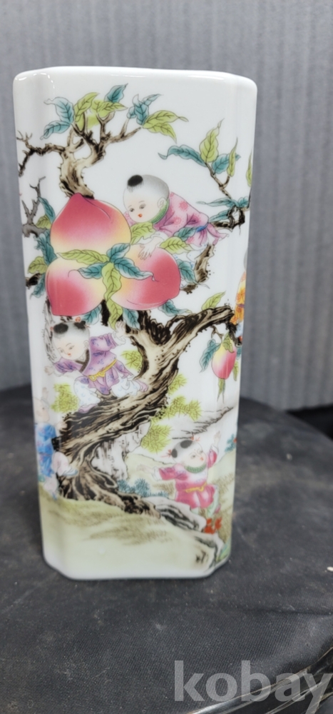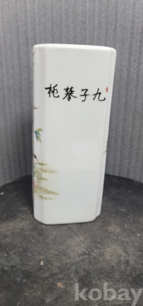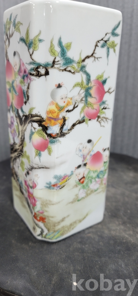 j-21.동치년제 동자와천도복숭아문양사각 뭇통