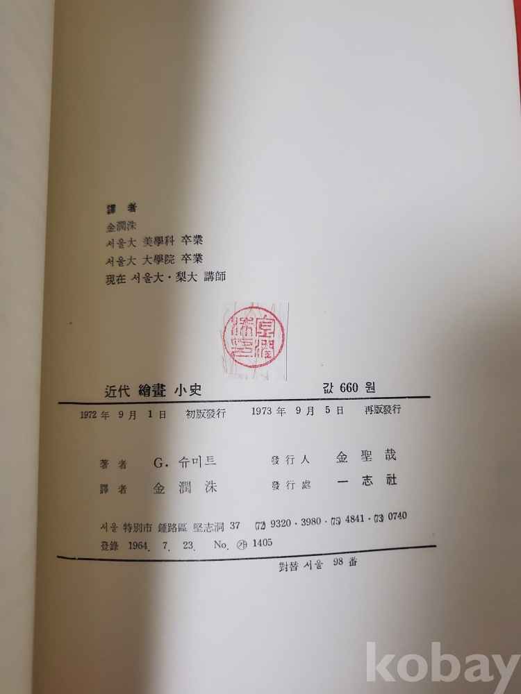 1. 근대 회화 소사, 슈미트(김윤수 번역), 일지사, 1973년, 107쪽, 상태 상, 사진 참조