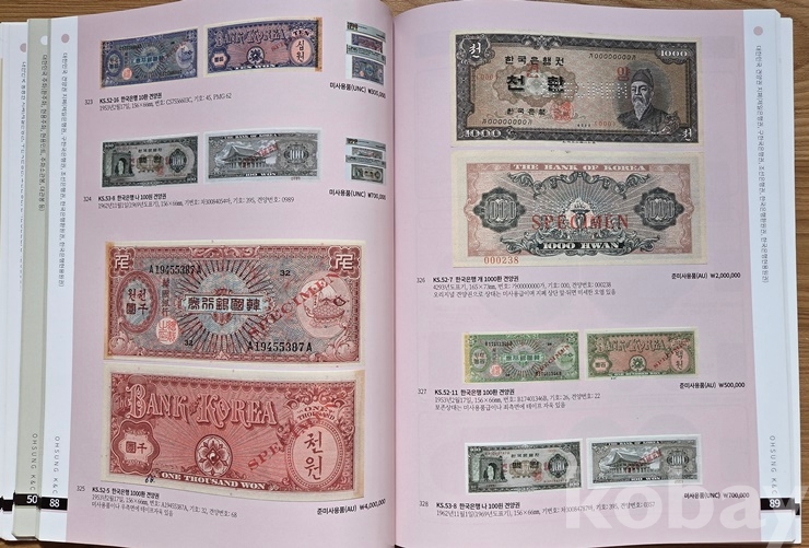 오성옥션 경매에 출품 각종 화폐가 (500~600여종 이상) 칼러 사진으로 잘 정돈되어 있습니다.