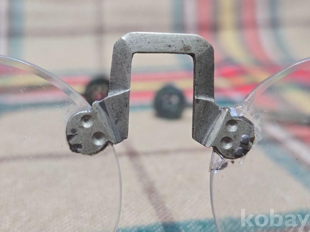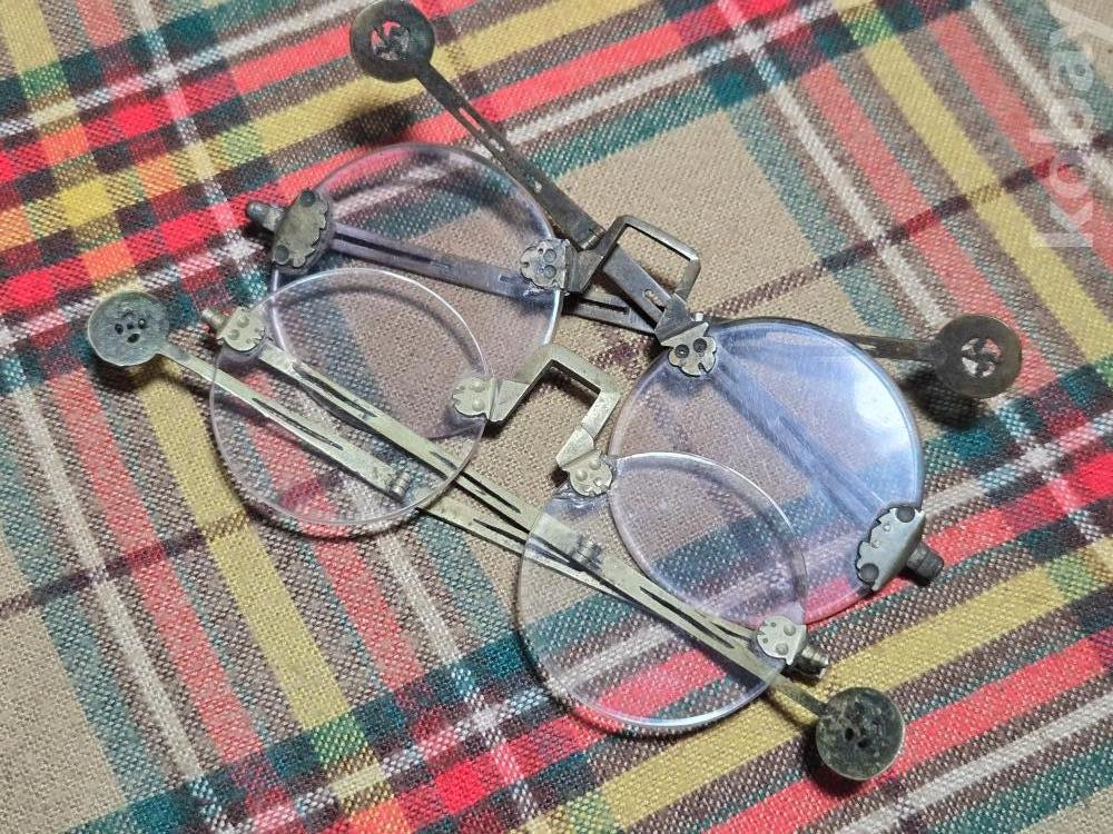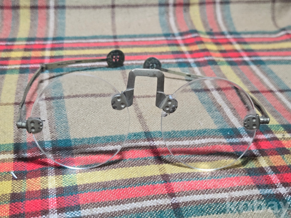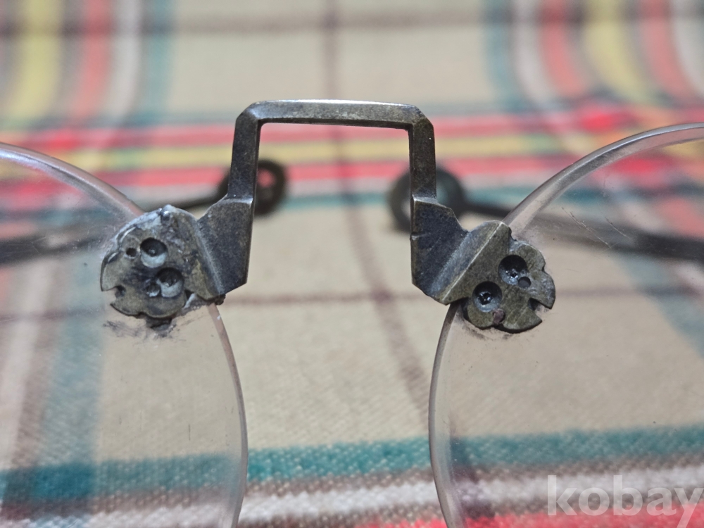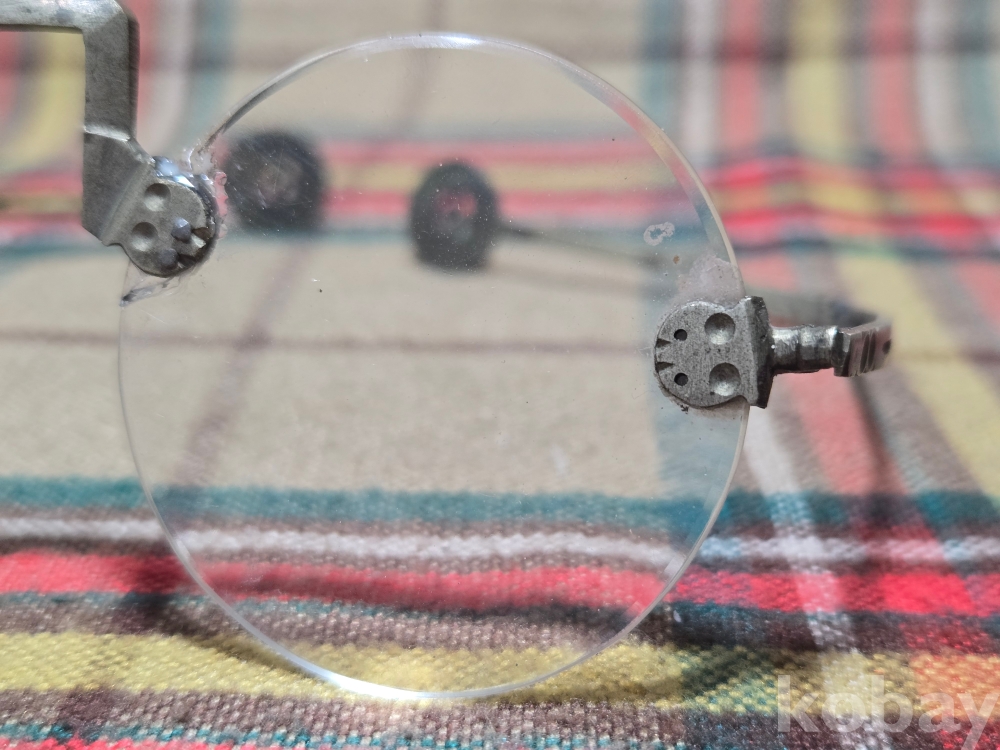 작은사이즈의 여성용 안경은 희귀한 규격으로 돋보기용 도수렌즈가 들어있지만 코걸이대와 연결부분의 유리말단부 파손으로 본드로 붙여두었습니다. 백동부분은 전혀손상이 없어 안경알을 교체하실수 있습니다. 사진참고~~