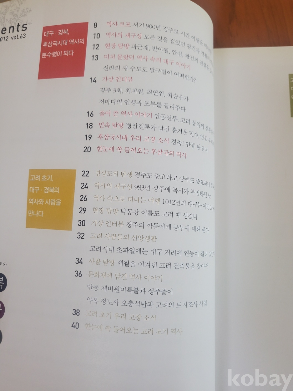 2. 내용 및 목차 : 고려 중기 대구 경북에 닥친 시련과 희망 / 대구 경북 곳곳 삼국유사와 일연의 발자취를 찾아서 / 고려말 개혁의 기운이 대구 경북 땅에서 움트다 // 순으로