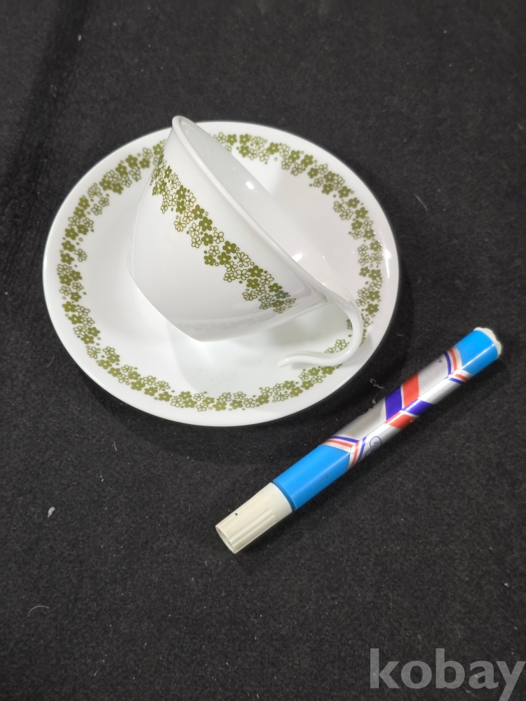 ​​​​(((빈티지커피잔))) 오래전 미국에서만든  CORELLE (코렐) by CORNING (코닝) 갈고리 커피잔 & 잔받침
