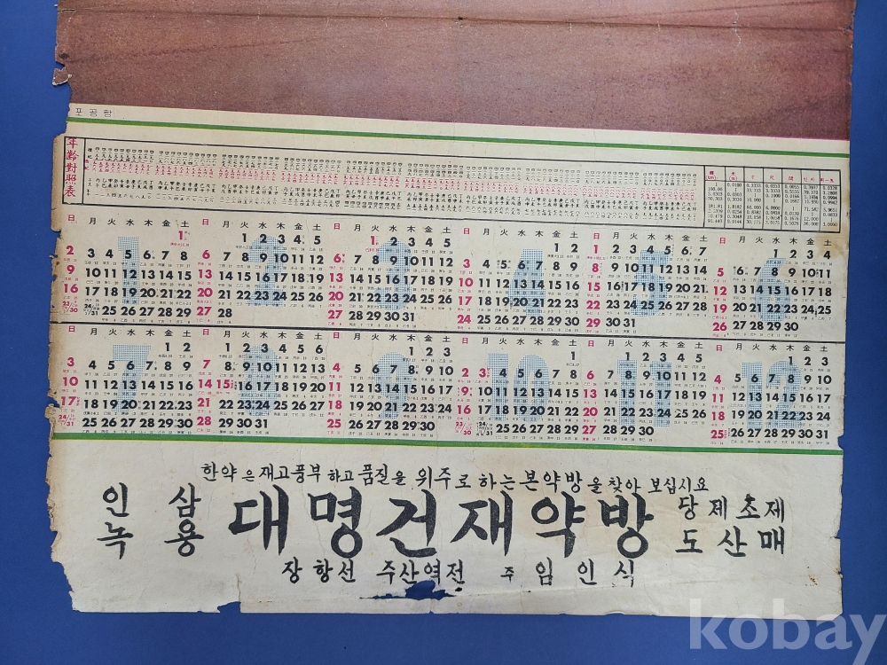 **** 김포공항 모습이 수록된 달력/충남 보령 대명건재약방에서 발행한 것이다/테두리 훼손된 부분이 있다