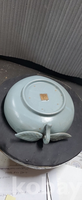 m-61.오래된 관지가특이한5대도자기여요복숭아문양큰수반