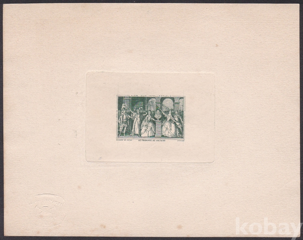 (하늘천) 프랑스 파리 1943년 비네트, 지식인 지원, 볼테르의 승리 (Triumph of Voltaire), 장 미셸 모로 (1741-1814), 그린 컬러 다이 프루프