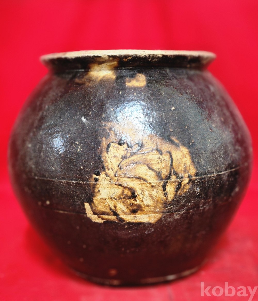 구한말 연대 갖춘 불꽃 문양 옹기 항입니다,