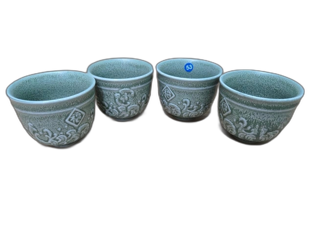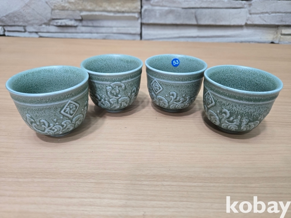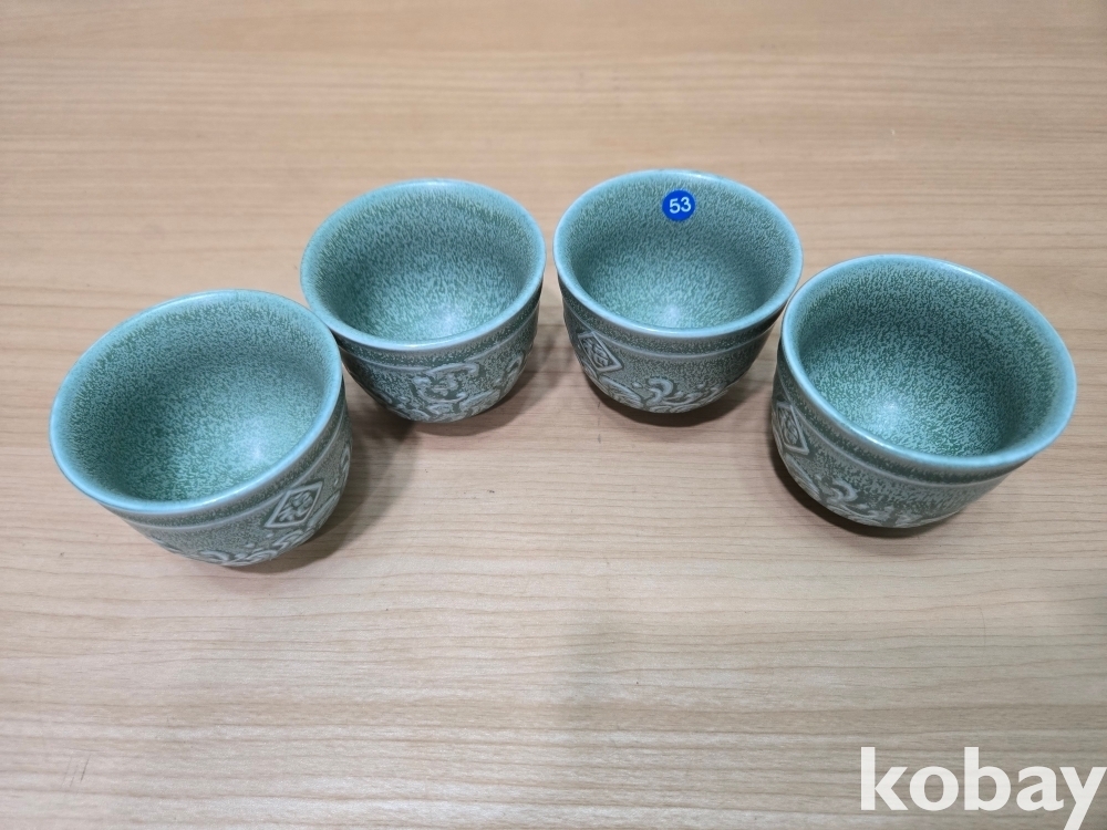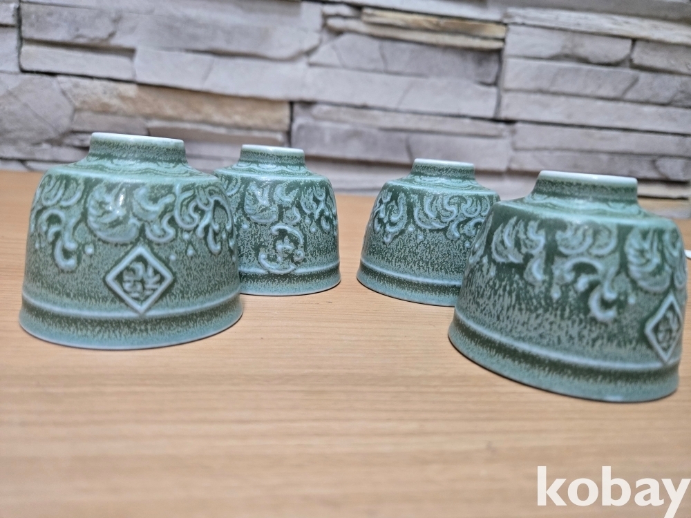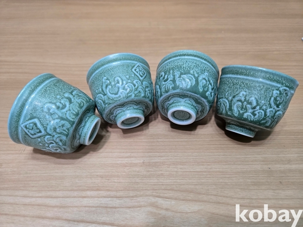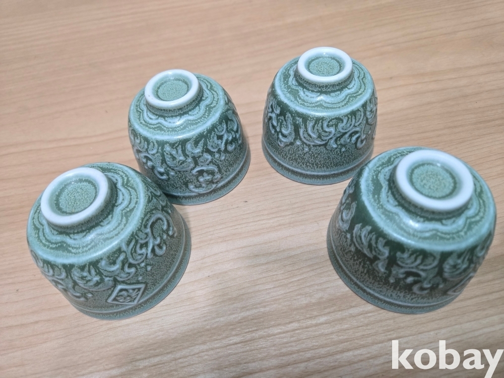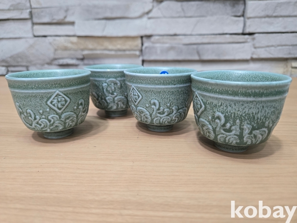 파도 표현이 돌출로 표현된 다기 잔 4개 입니다.
