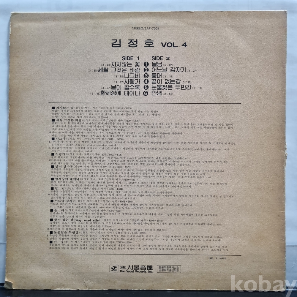 . 오래된 음반들은 잡음이나 튐, 백화등이 있을 수 있습니다. 올리기