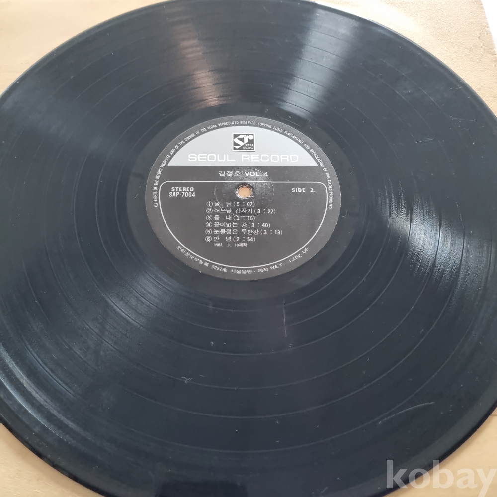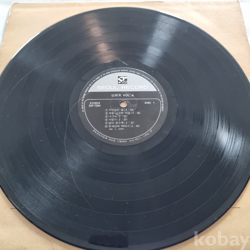 | 자켓상태 | EX : 약간의 마모, 모서리 찢김 존재 | 음반상태 | G : 눈에 띄는 스크래치, 튐 또는 노이즈 발생 | 발매정보 | 알수없음 | 가사지여부 | 무 |