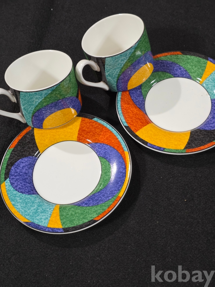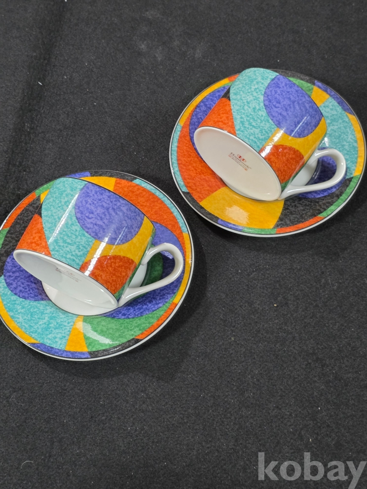 ​​​​(((도자기커피잔))) 오래전 무늬가 화려한 커플 도자기 커피잔 & 잔받침 (한국도자기)
