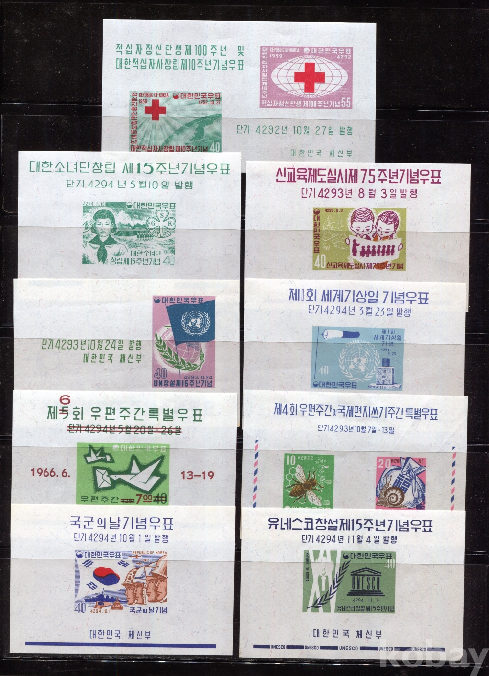 - [시트] 1959-60년대 미사용 기념시트 9종 (All MNH : Mint Not Hinged : 뒷면 힌지자국없이 깨끗한 상태)