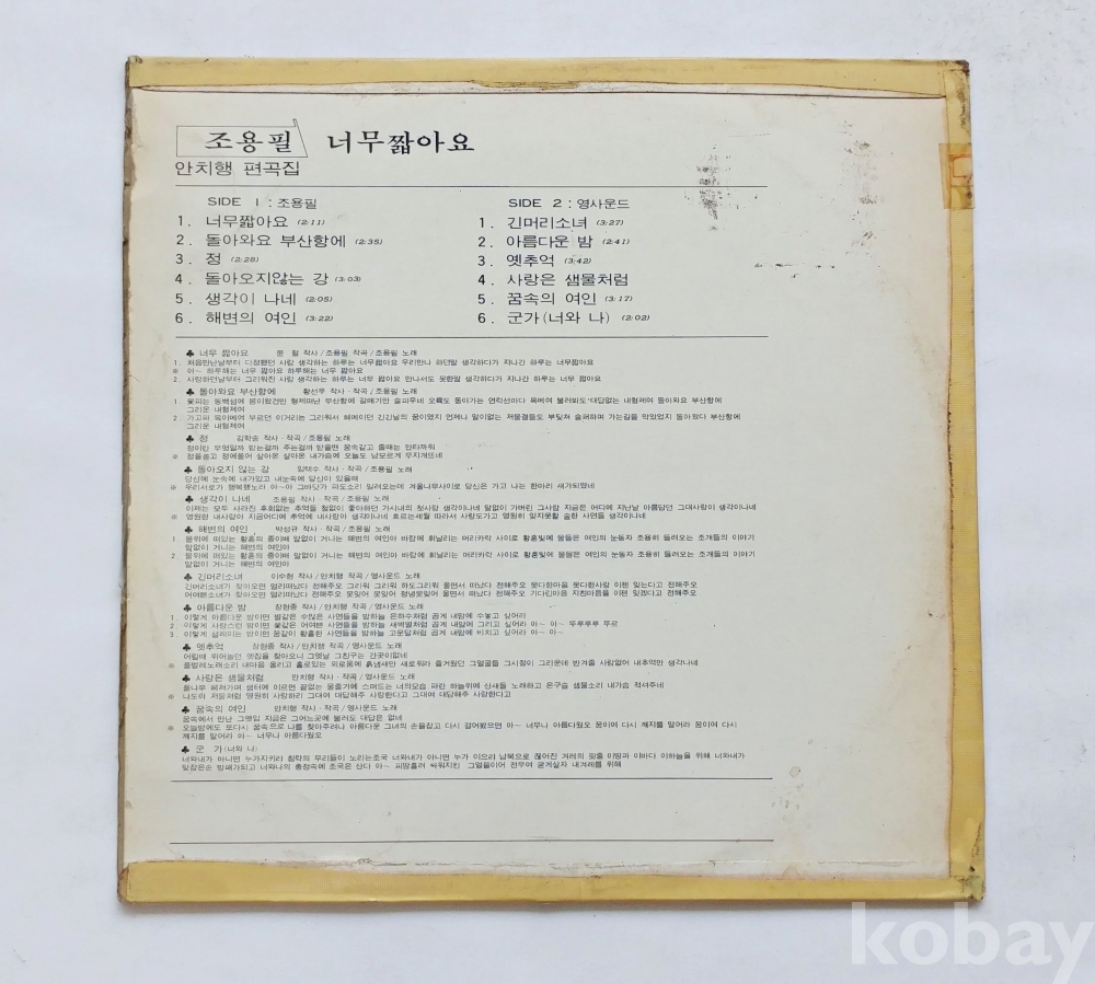 EX : 약간의 마모, 모서리 찢김 존재 음반상태