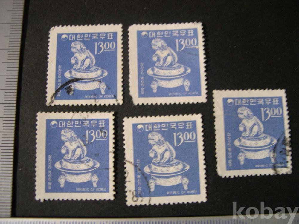 사용제, 5매 #424 : 13.00원 청자조각옥사자향로 - 2차 국산백지 (1966. 7. 1)