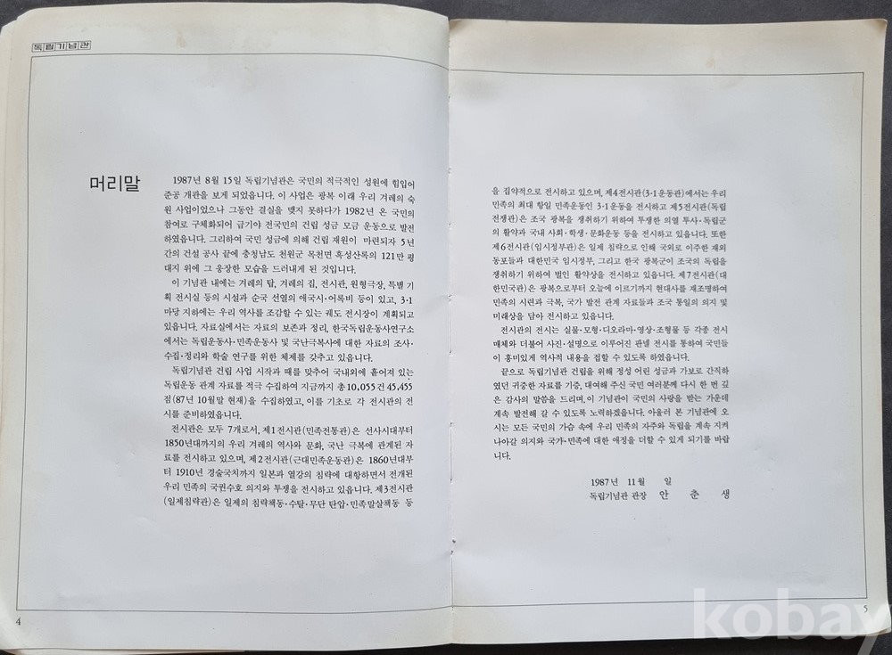 당시 안춘생 초대 관장의 머리말이 수록되어 있으며,