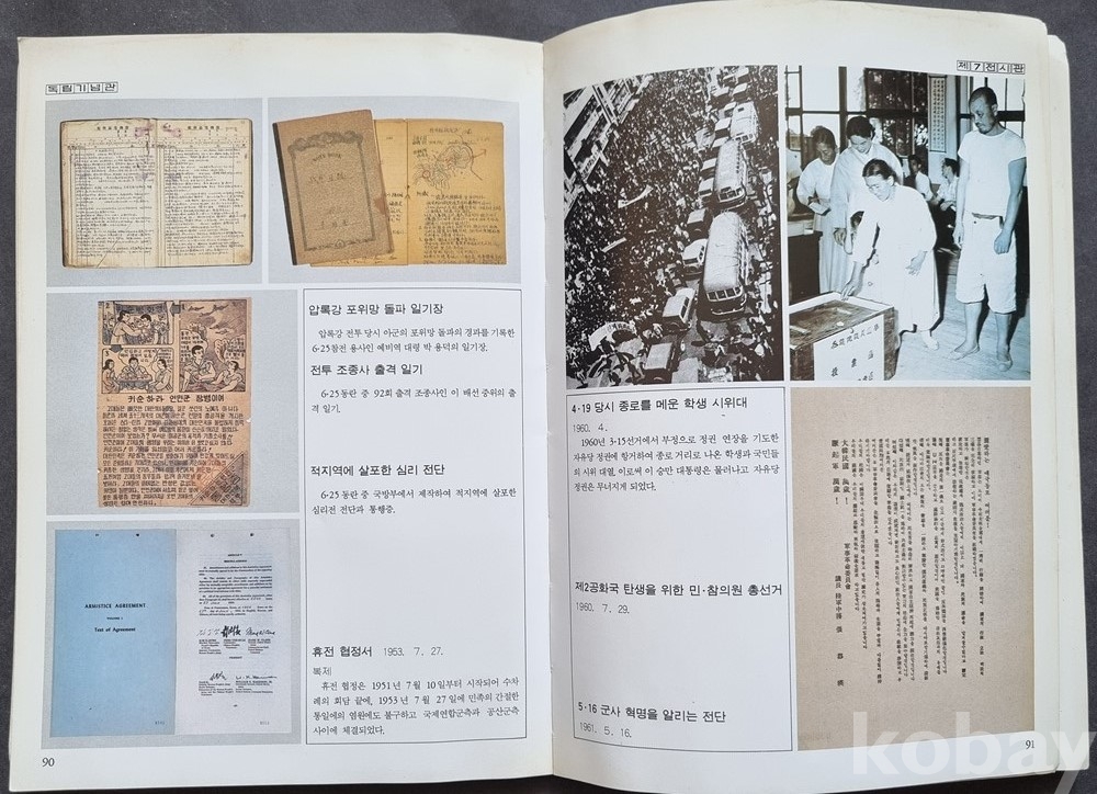 현대사 자료: 4·19 혁명, 5·16 군사 혁명 등 근현대사를 아우르는 전시품 설명.
