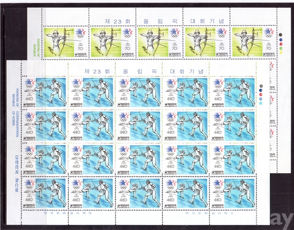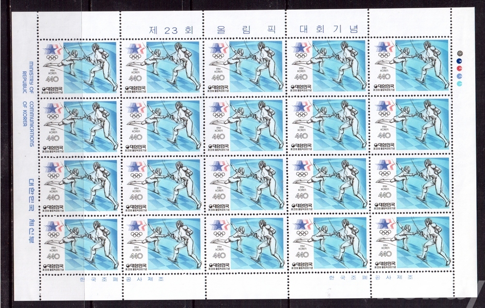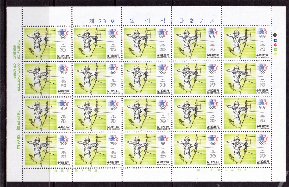 (한국전지) 1984.7.28 제23회 로스앤젤리스올림픽대회 2완 sheet of 20 MNH
