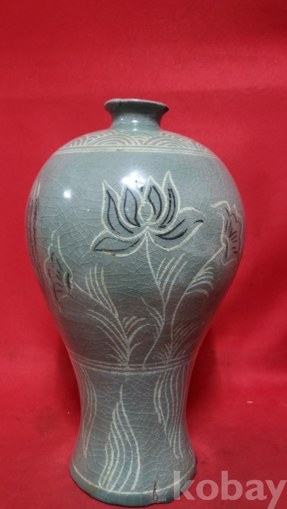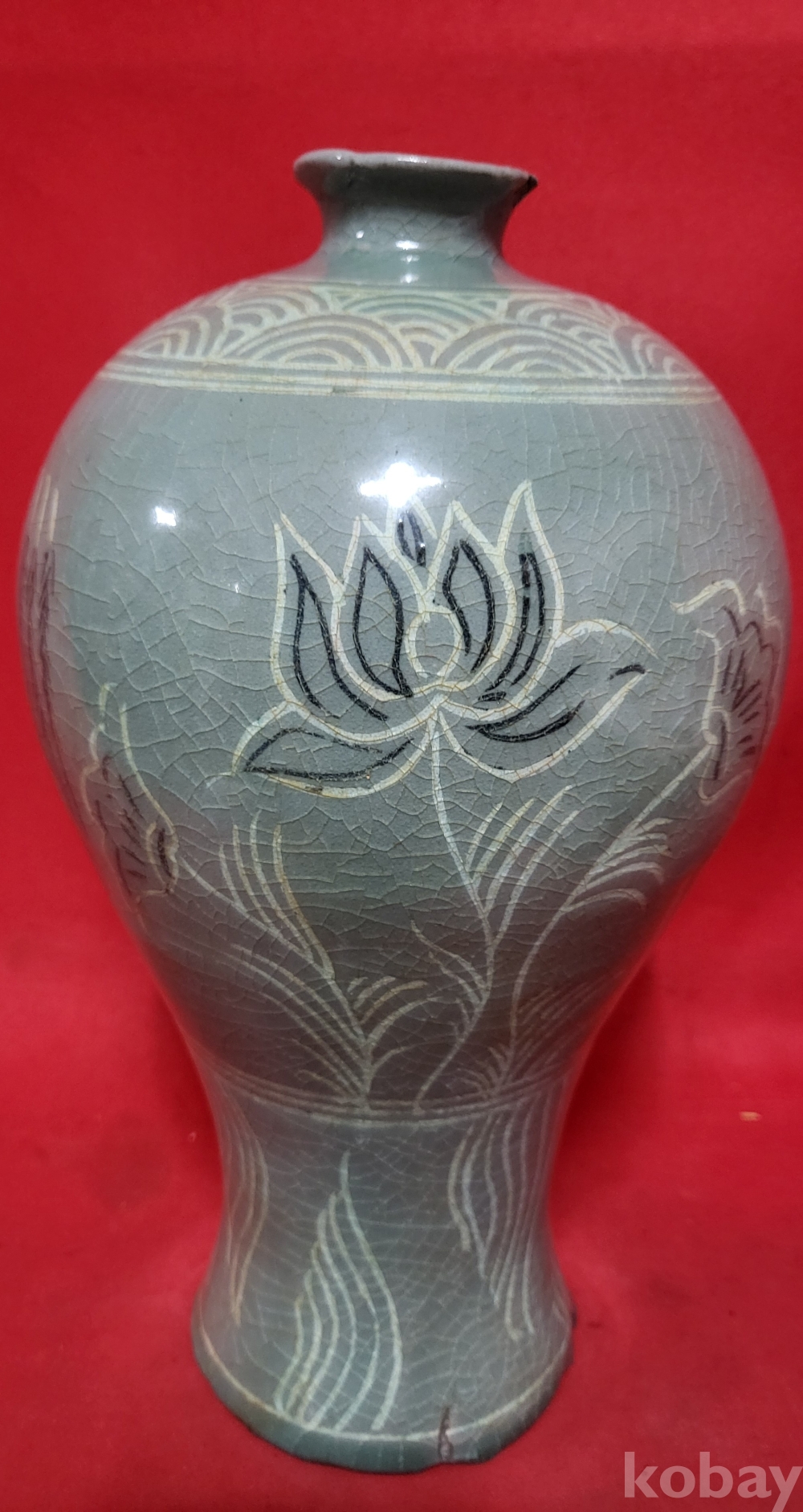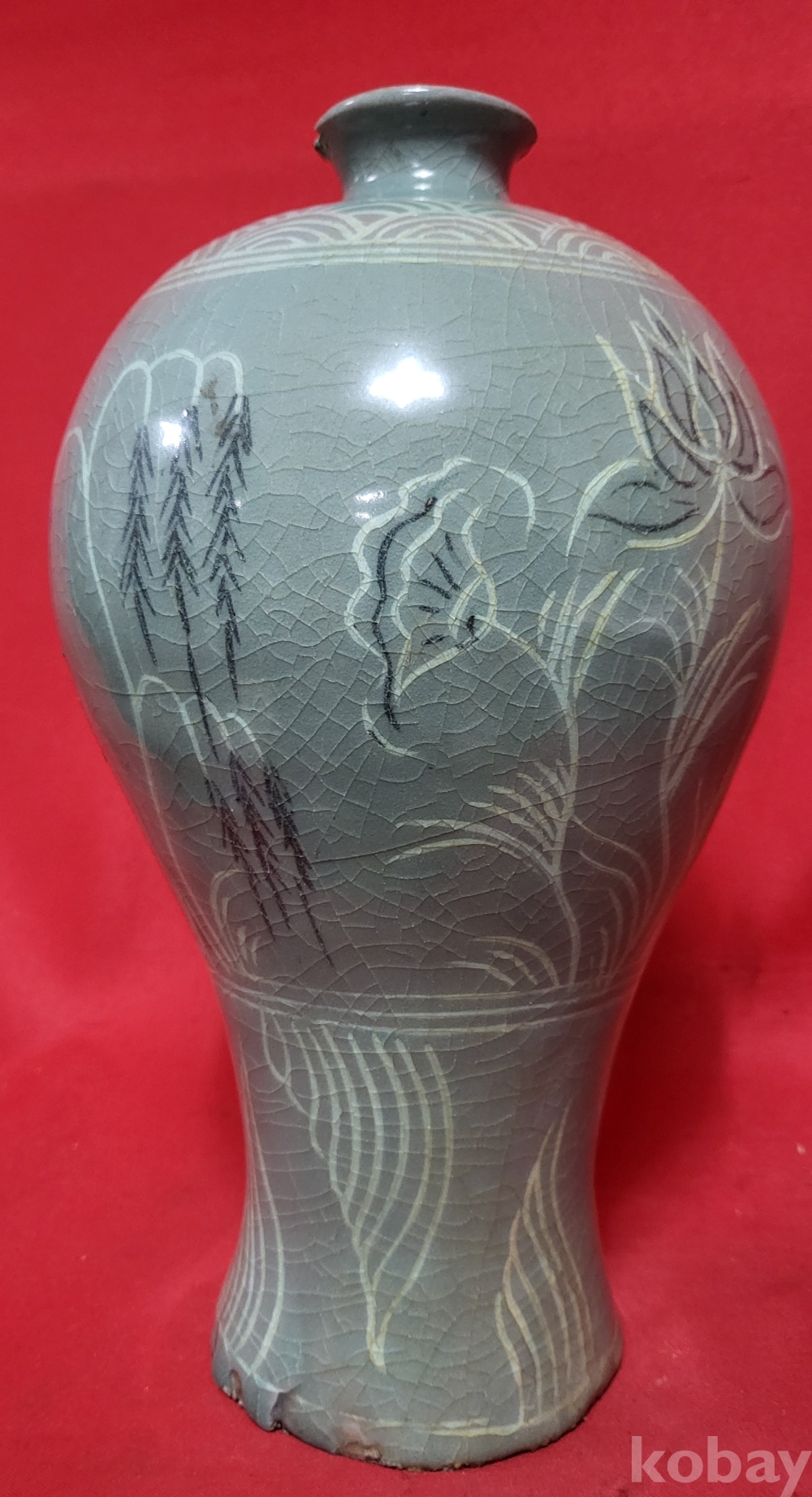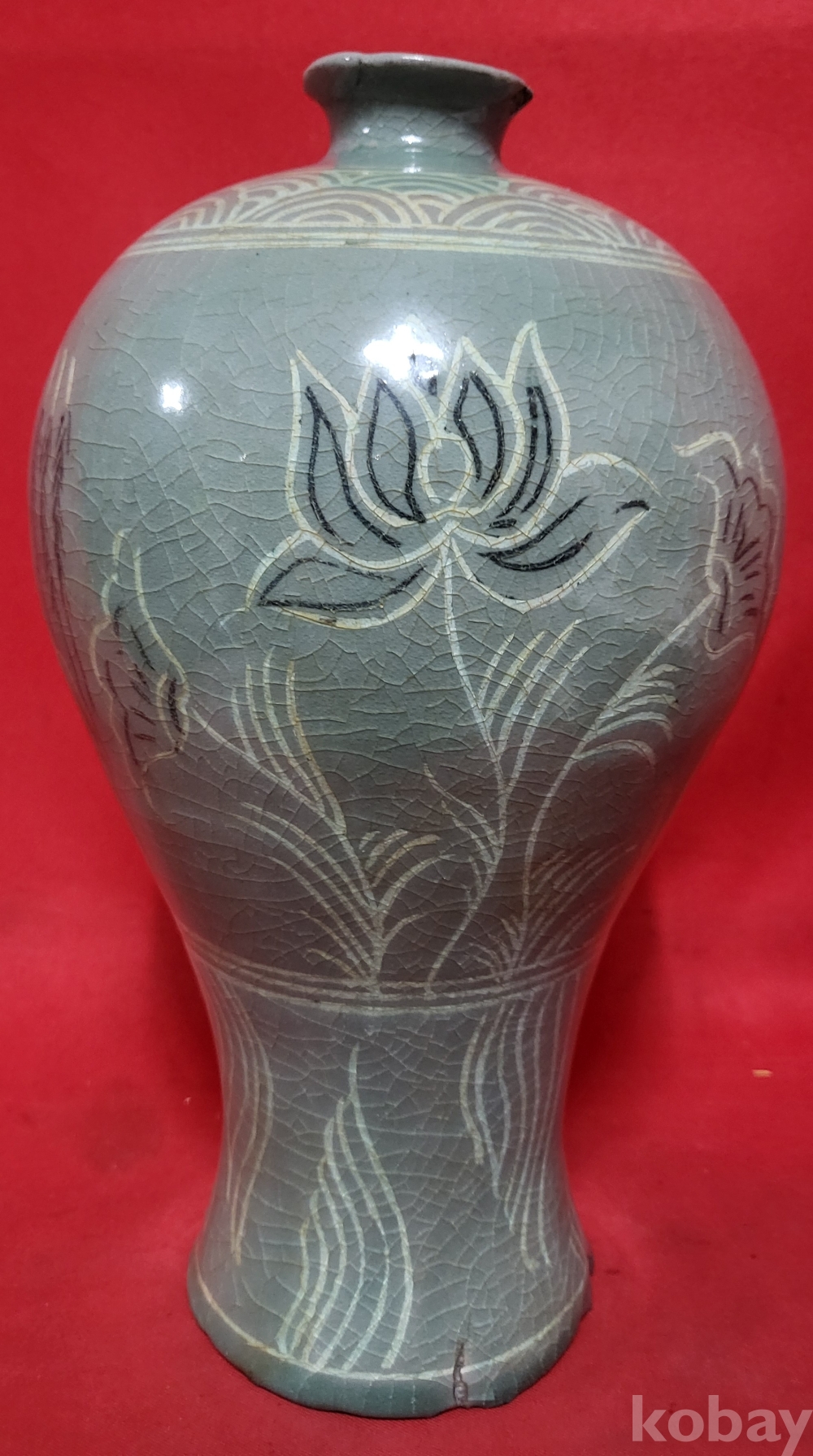 연대감이 보이는 상감청자 연꽃문양 미감정 매병입니다,