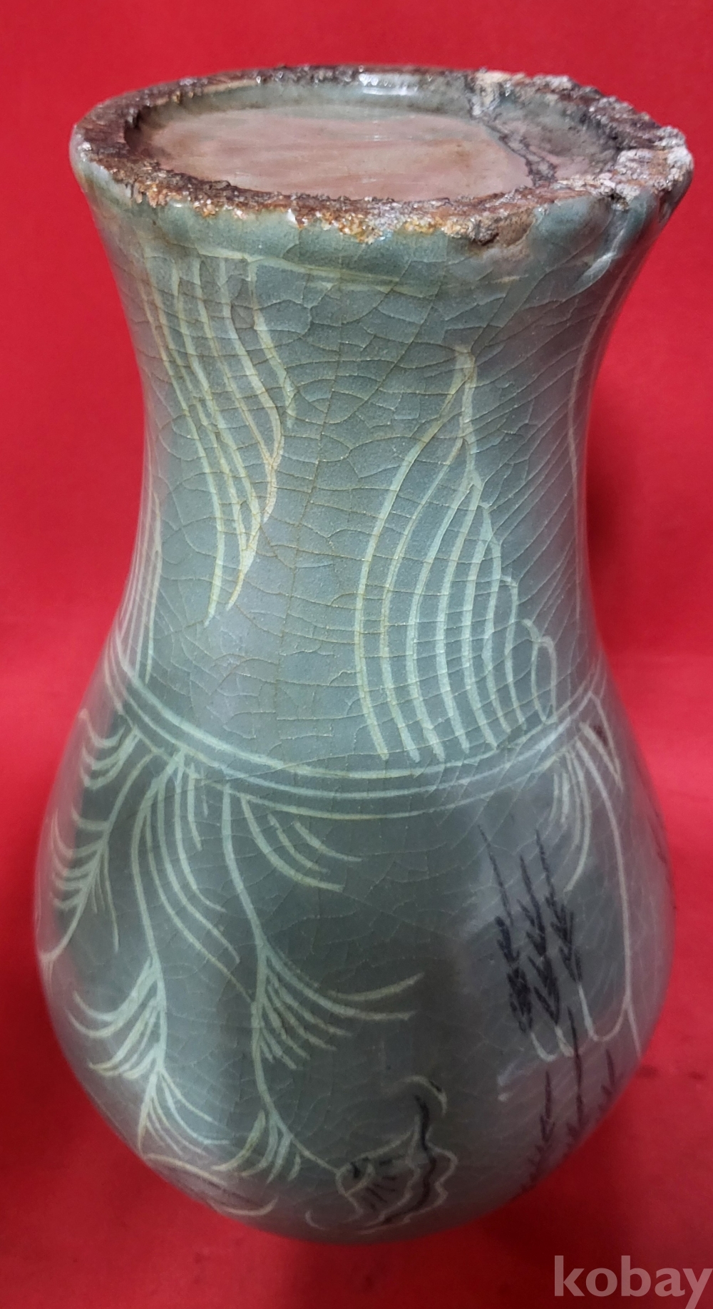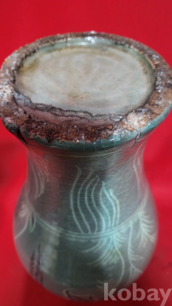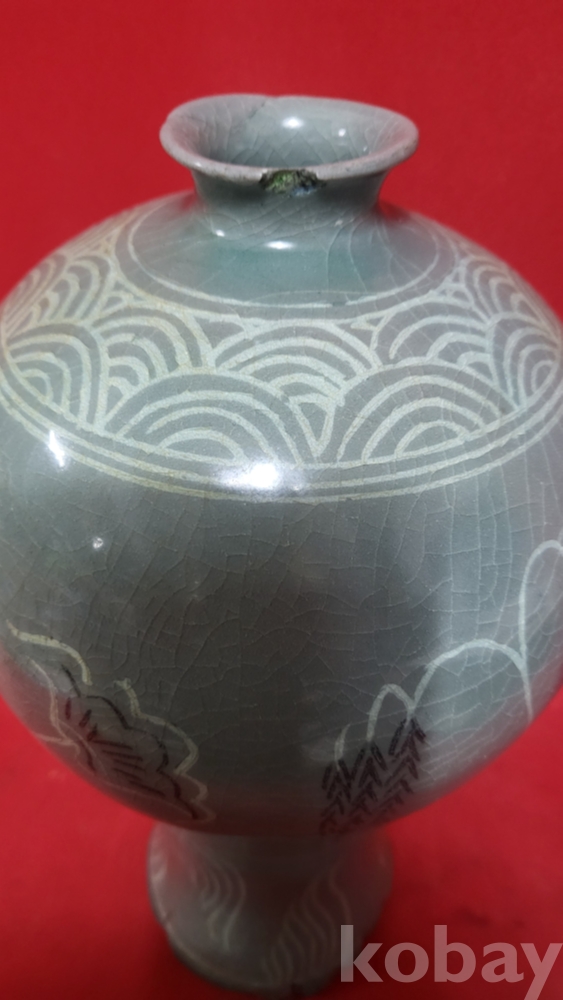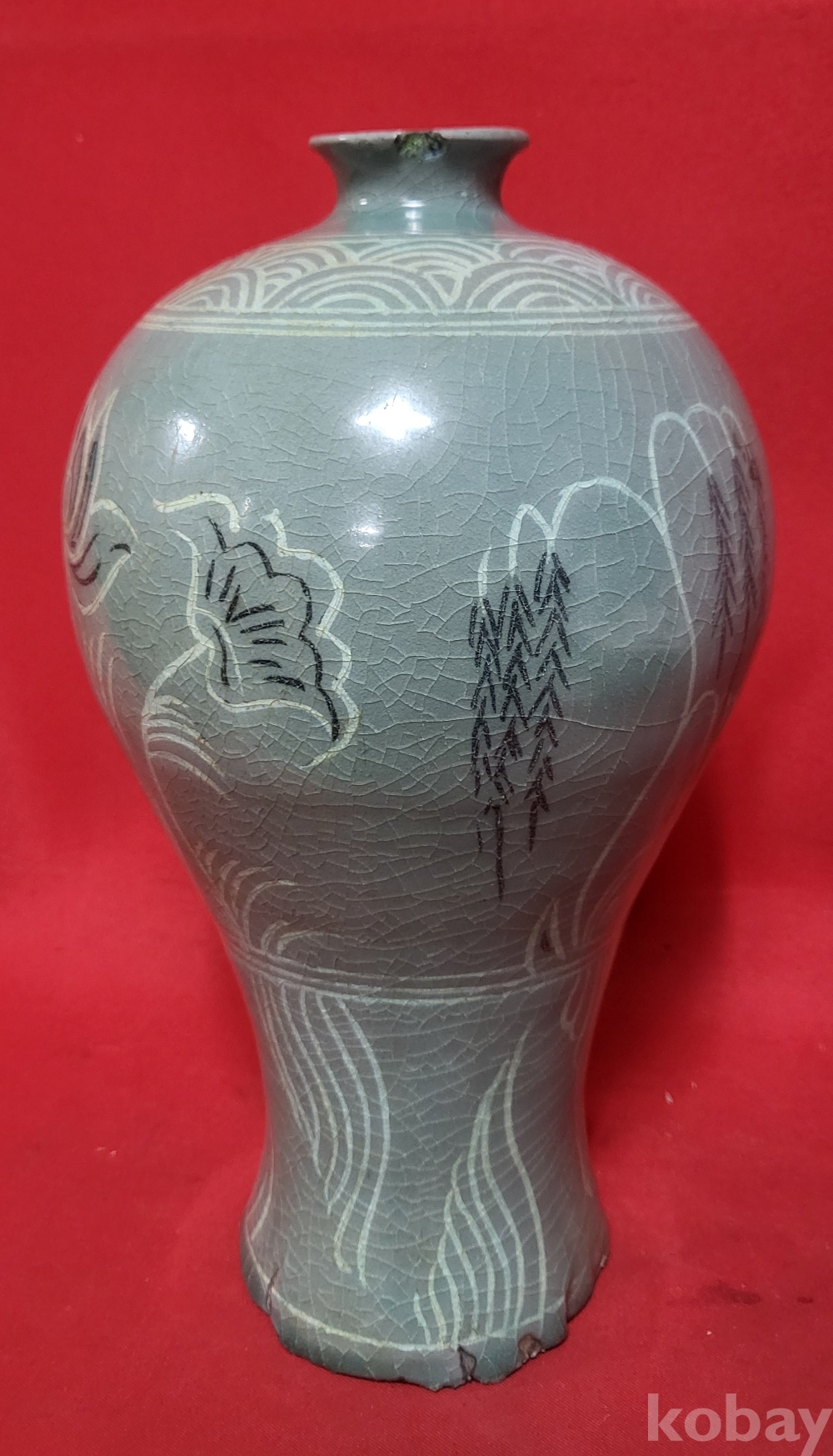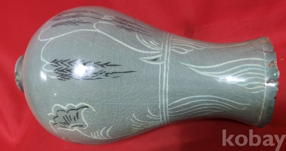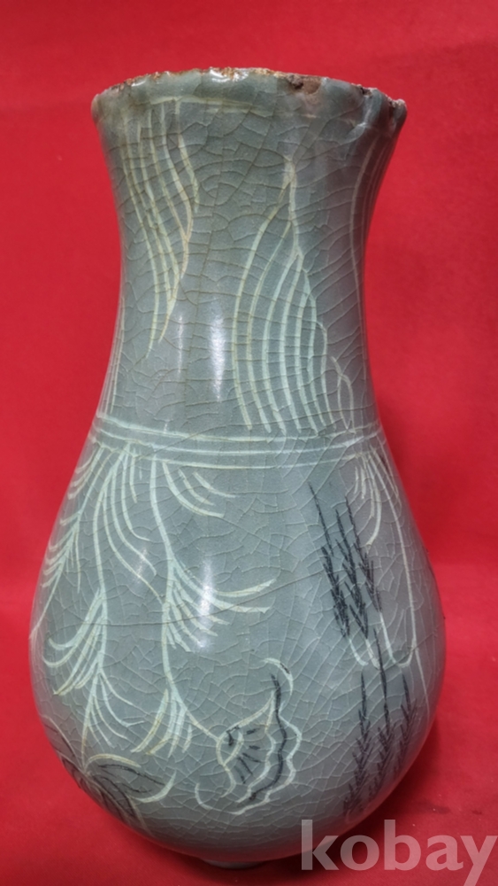연대감이 보이는 상감청자 연꽃문양 미감정 매병입니다,
