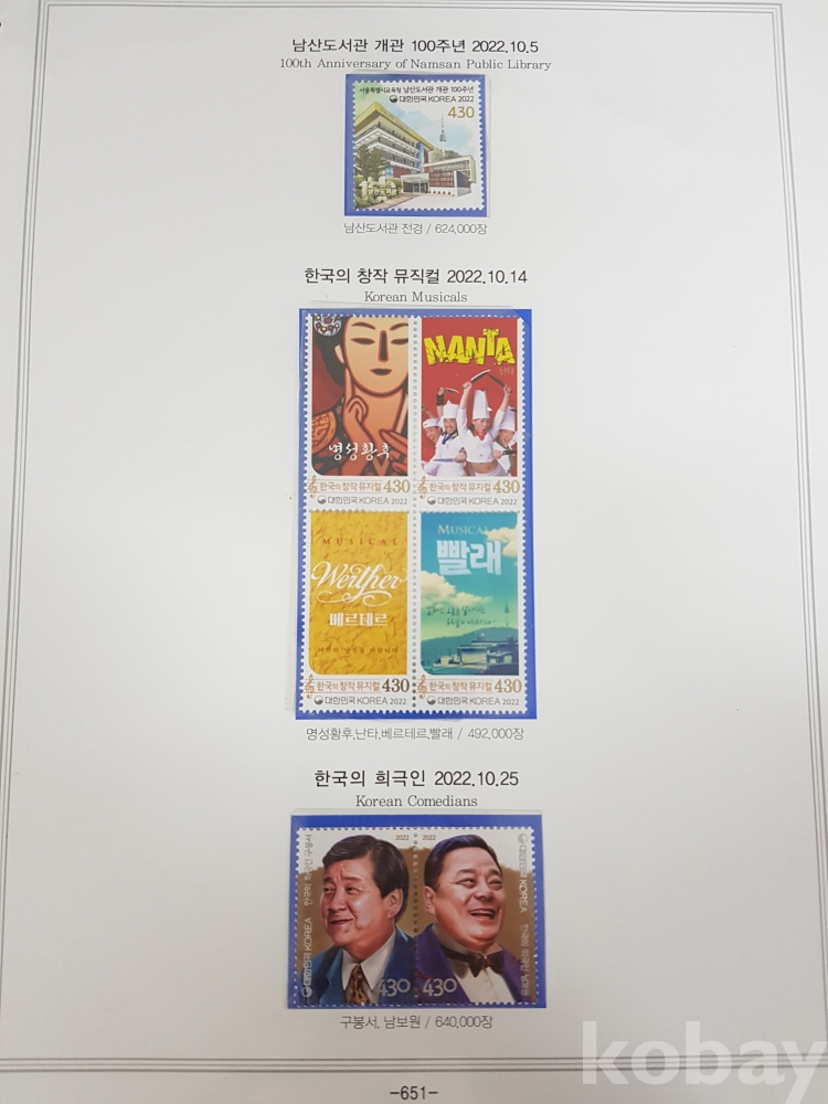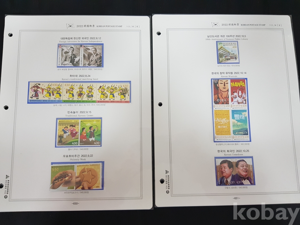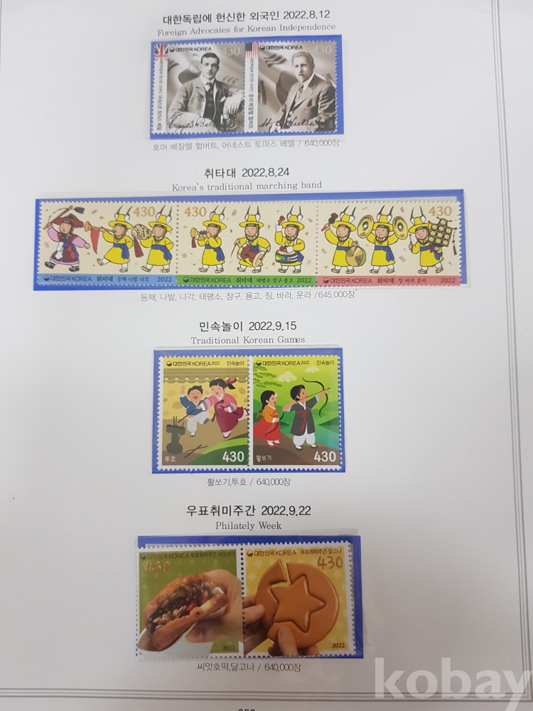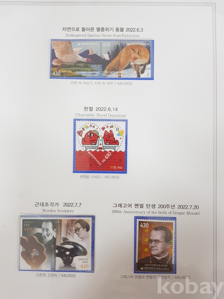 - 일부 미부착된 부분이 있을 수 있습니다. 이 경우 보유하고 계신 우표를 채워 넣어 수집하시면 더욱 완성도 있는 컬렉션을 만드실 수 있습니다.