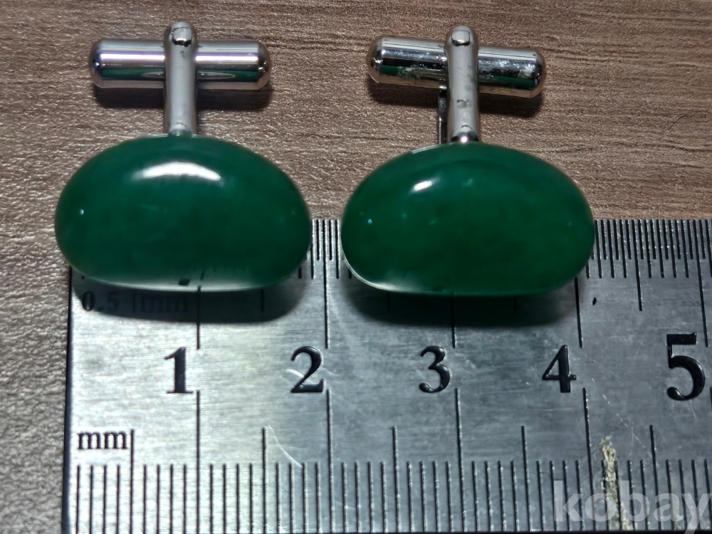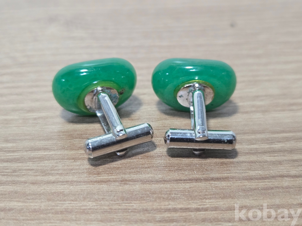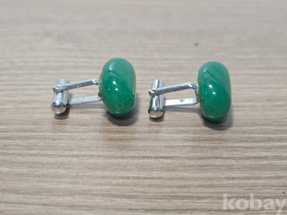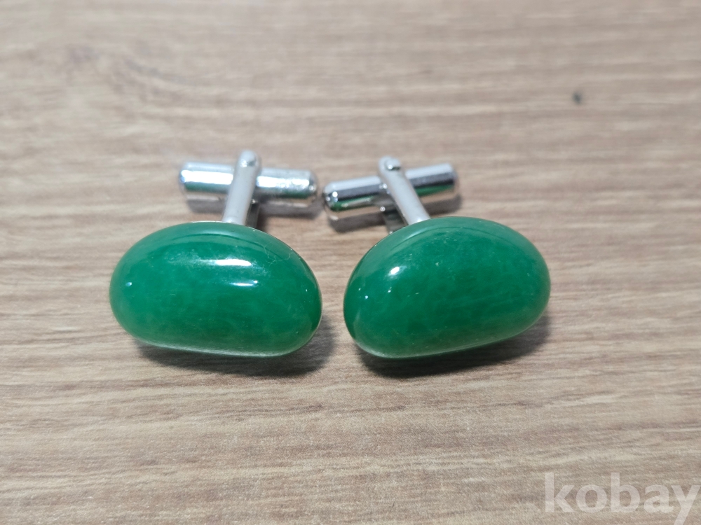 아름다운 일본제조 천연원석, 녹색 비취옥 커프스 버튼세트