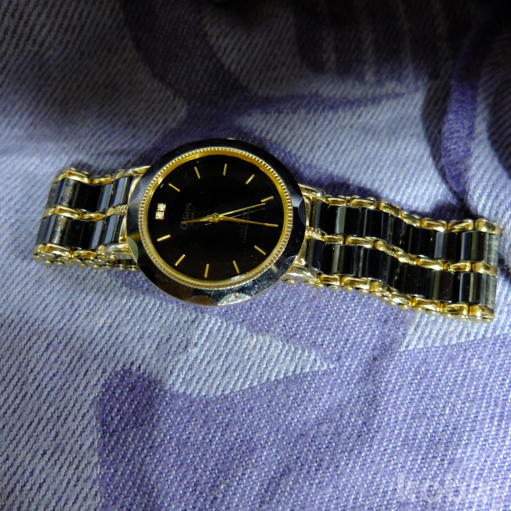 용두( 크라운 )이 18K 금으로 만들어진 시계 입니다.