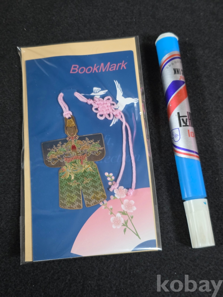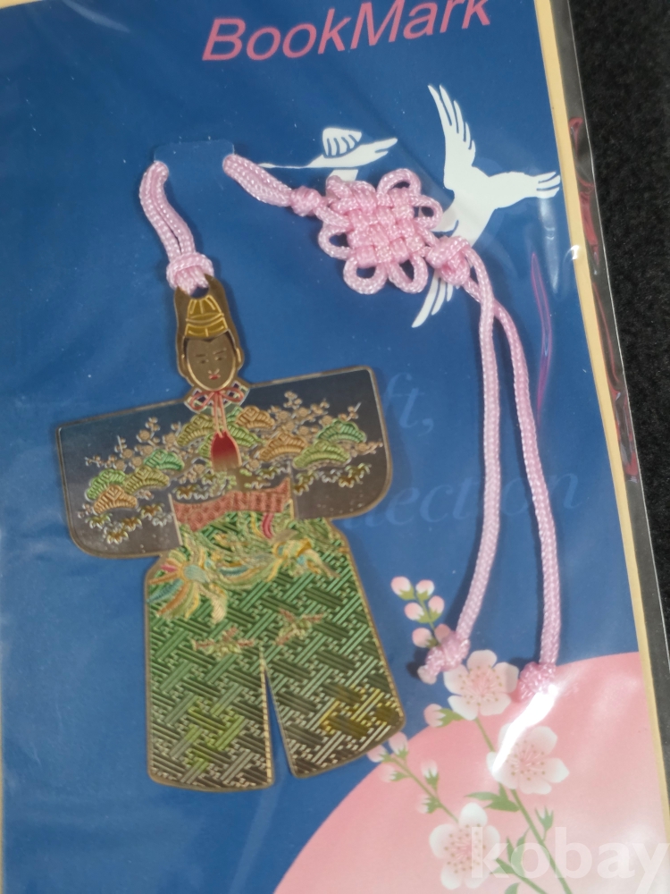(((BooMark))) 매듭달린 일본 귀족가문 "오히나상" 모습 24k Gold Plating 금속 북키퍼 (책갈피)(미사용)