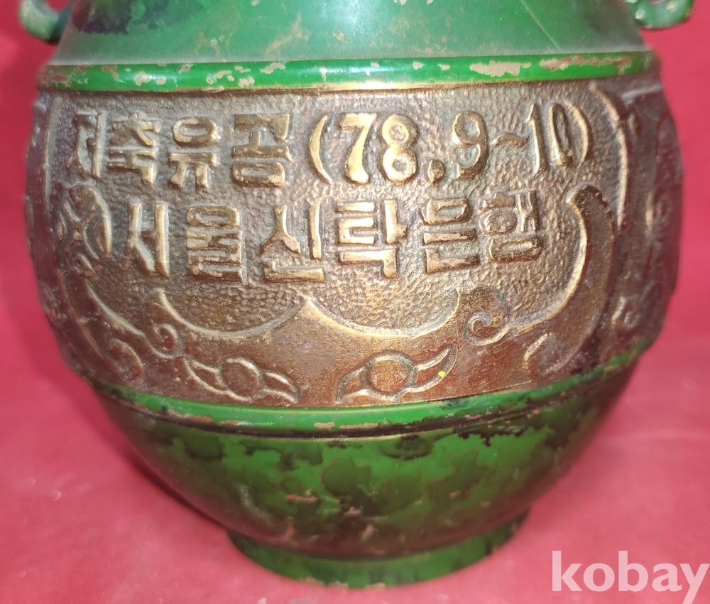 서울신탁은행 1978년 作 청동으로 만든 양귀달린 병입니다,
